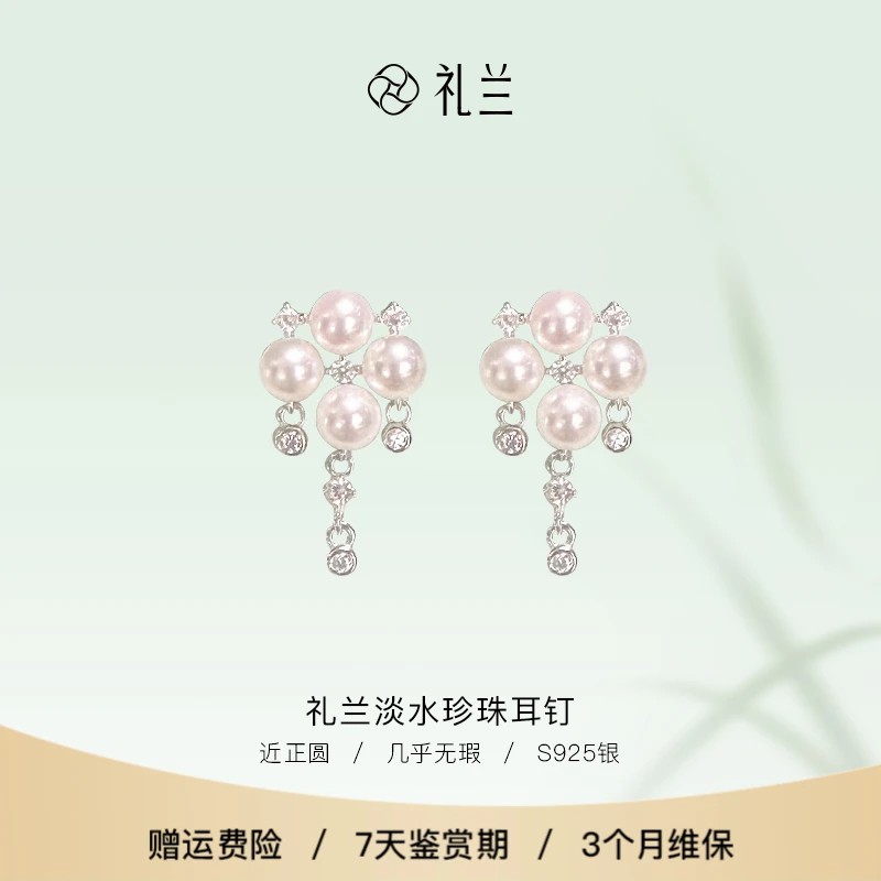 礼兰 气质S925银淡水珍珠耳钉4.5-5mm