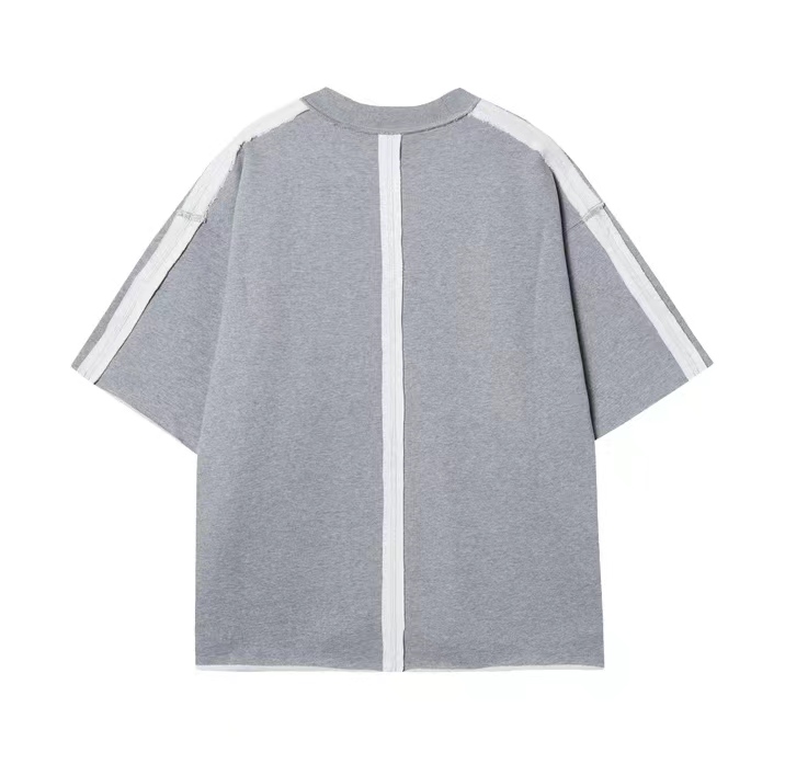 T831夏季时尚新款潮流拼接做旧男女短袖百搭休闲上衣简约宽松T恤