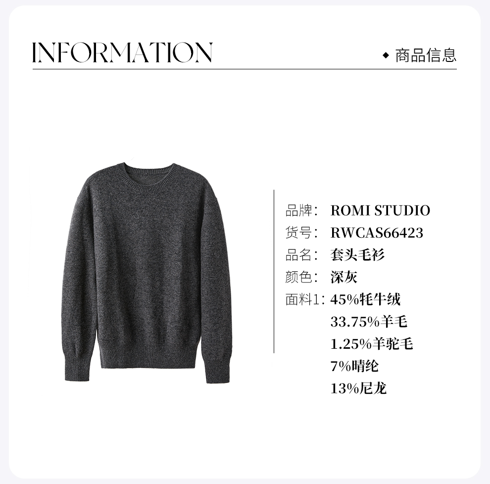 ROMI STUDIO“秋日轻絮”牦牛绒羊驼羊毛气质套头毛衫RWCAS66423