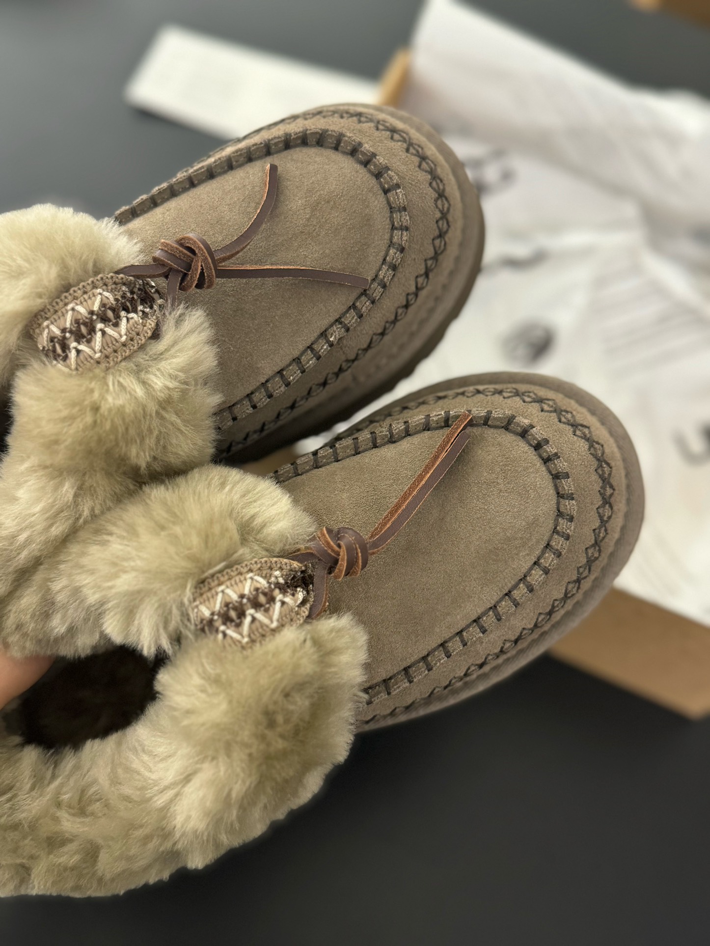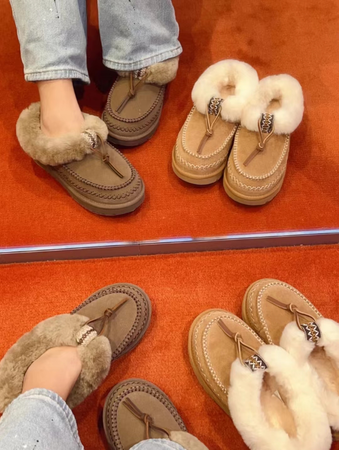 代购级品质 牛皮鞋面+羊皮毛一体。eva 不易变形大底。颜色 :栗色 胡桃木色。码数:35-40。