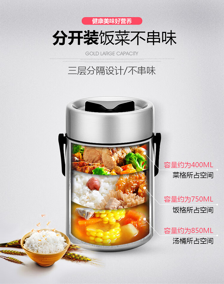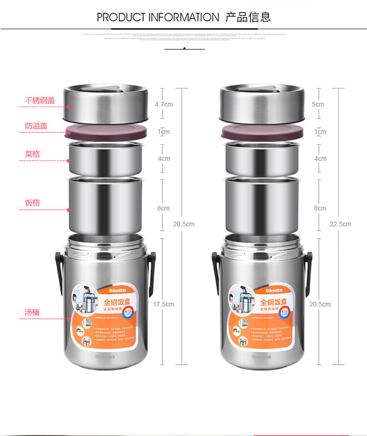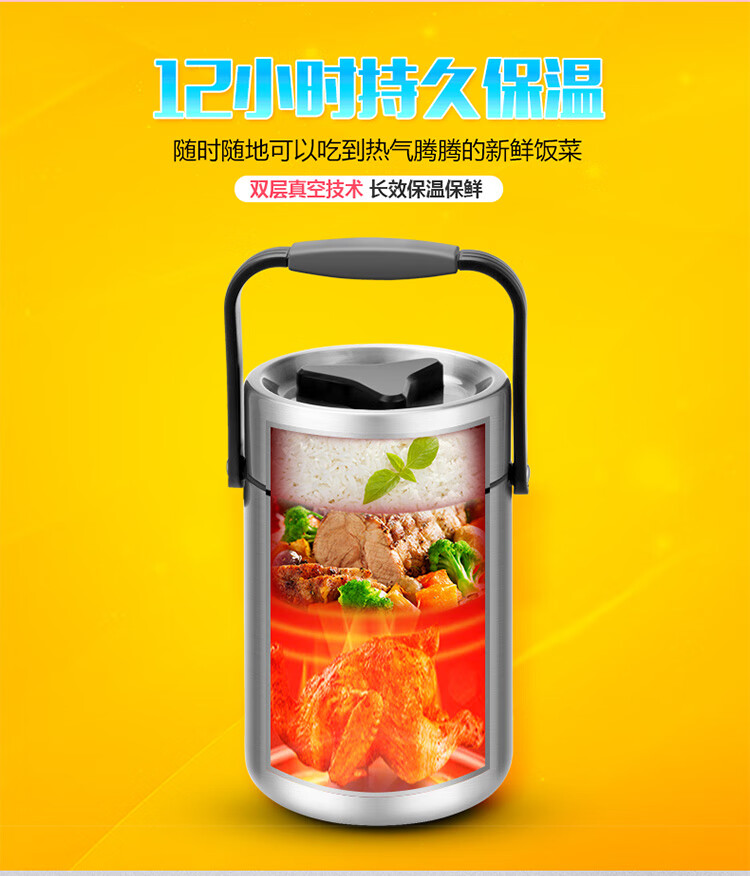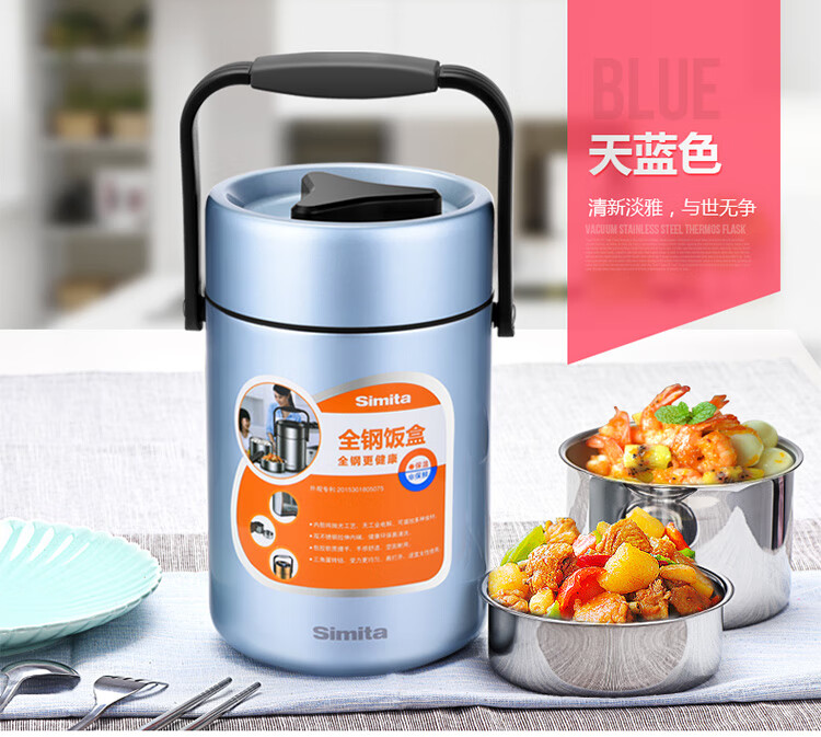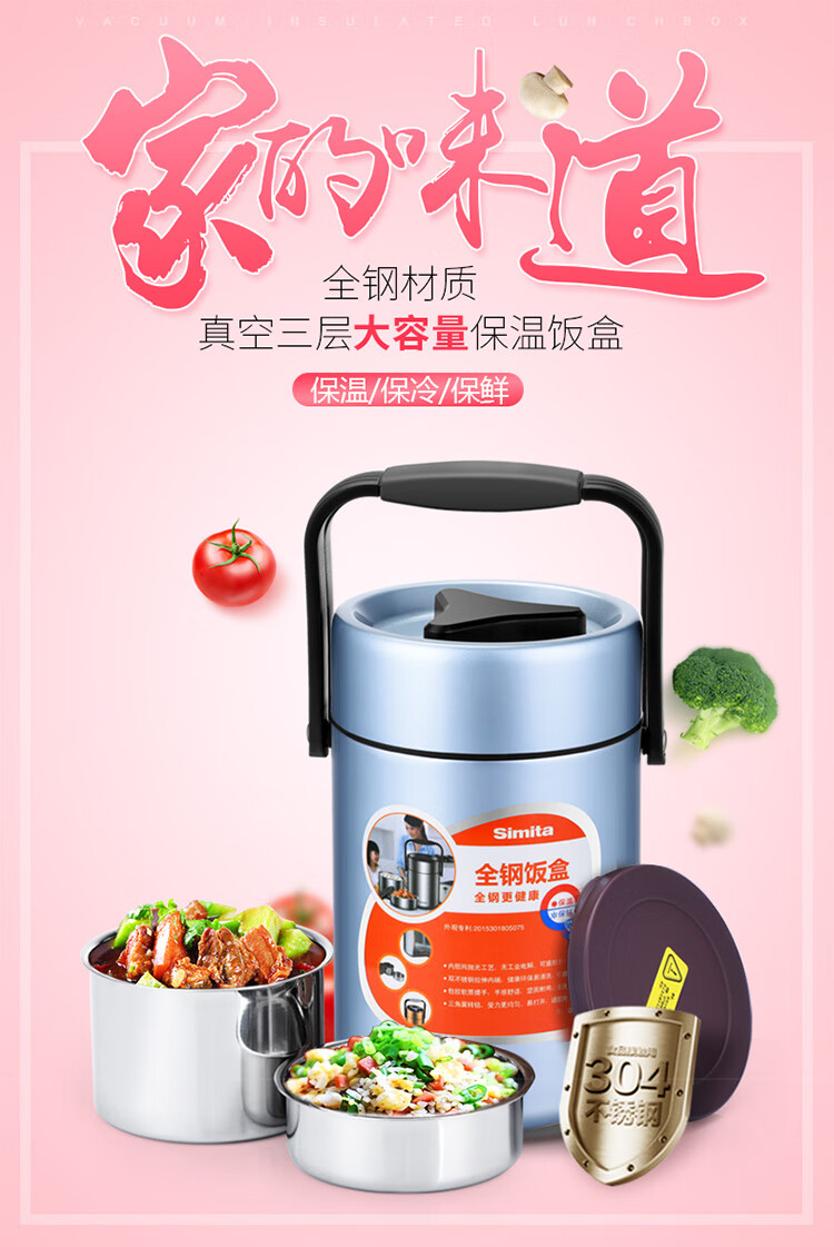 施密特(Simita)全钢桶不锈钢双层真空保温饭盒大容量2/3层全钢保温桶户外便当盒 MFH1001-200A