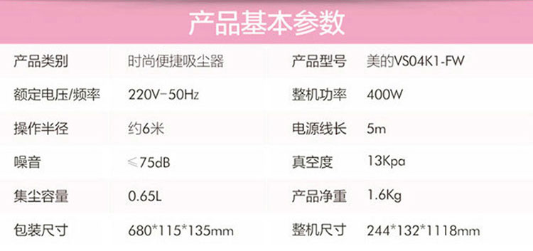 美的(Midea)吸尘器小型迷你强力吸尘除尘手持式推杆VS04K1-FW
