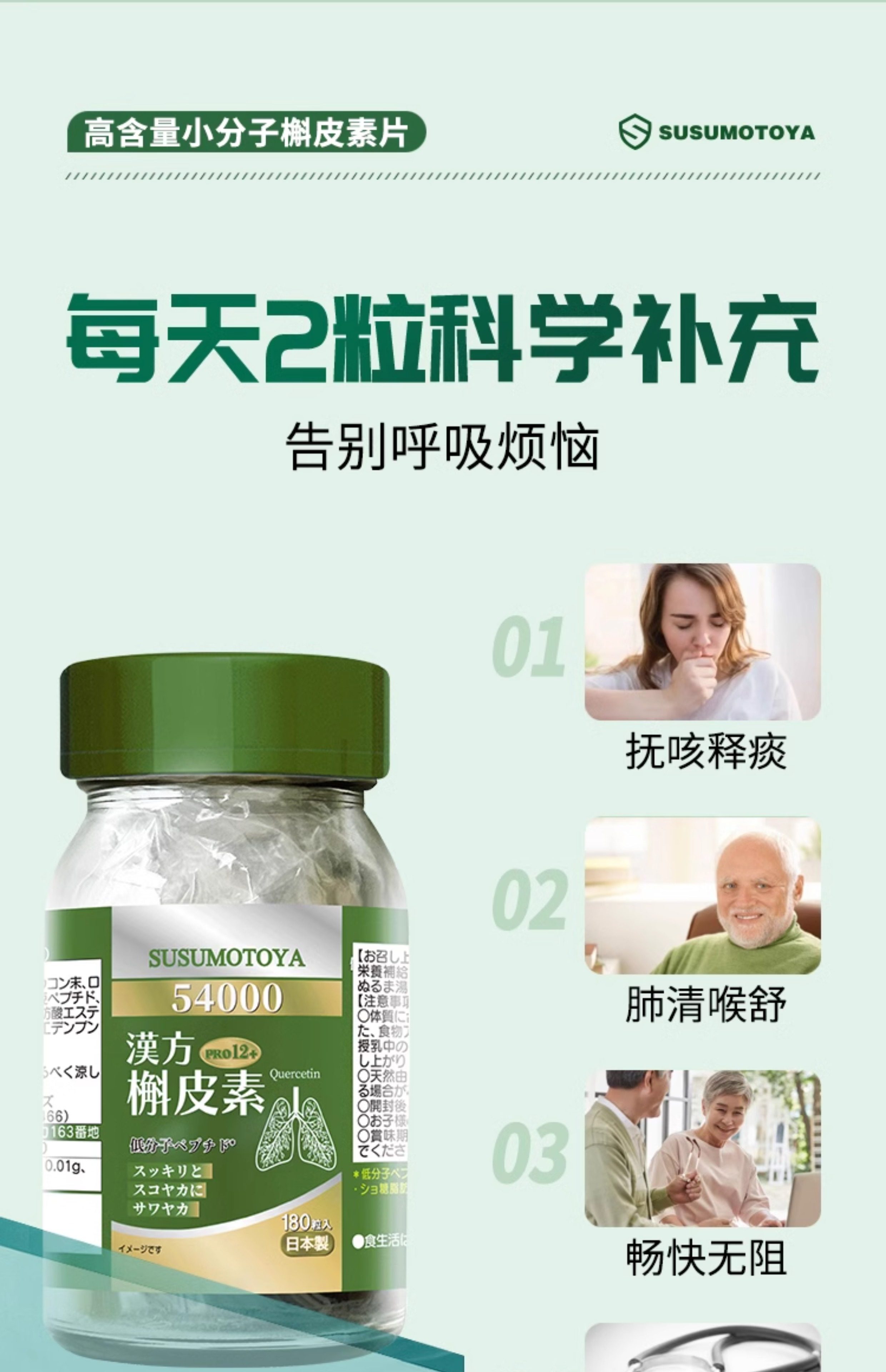 【3送1】汉方槲皮素日本进口高端正品保健品养肺护肺调理肺健康