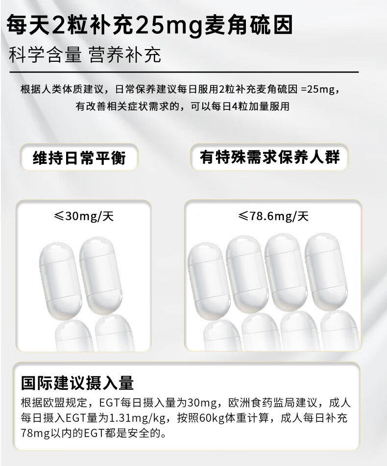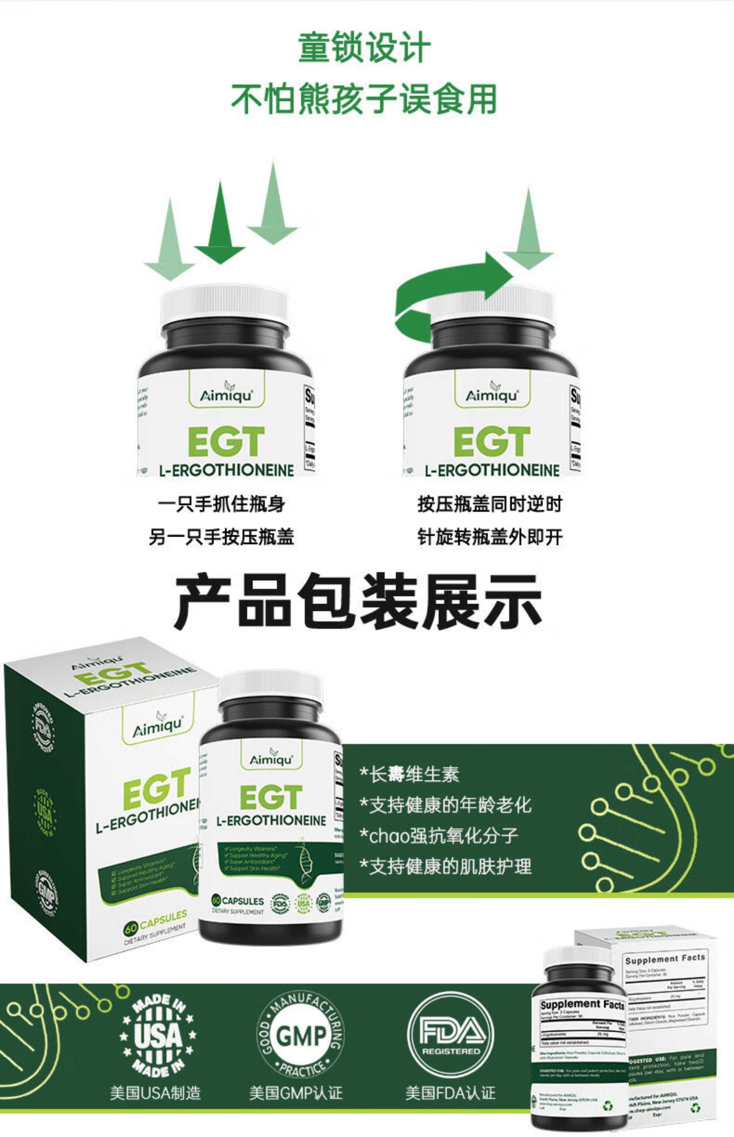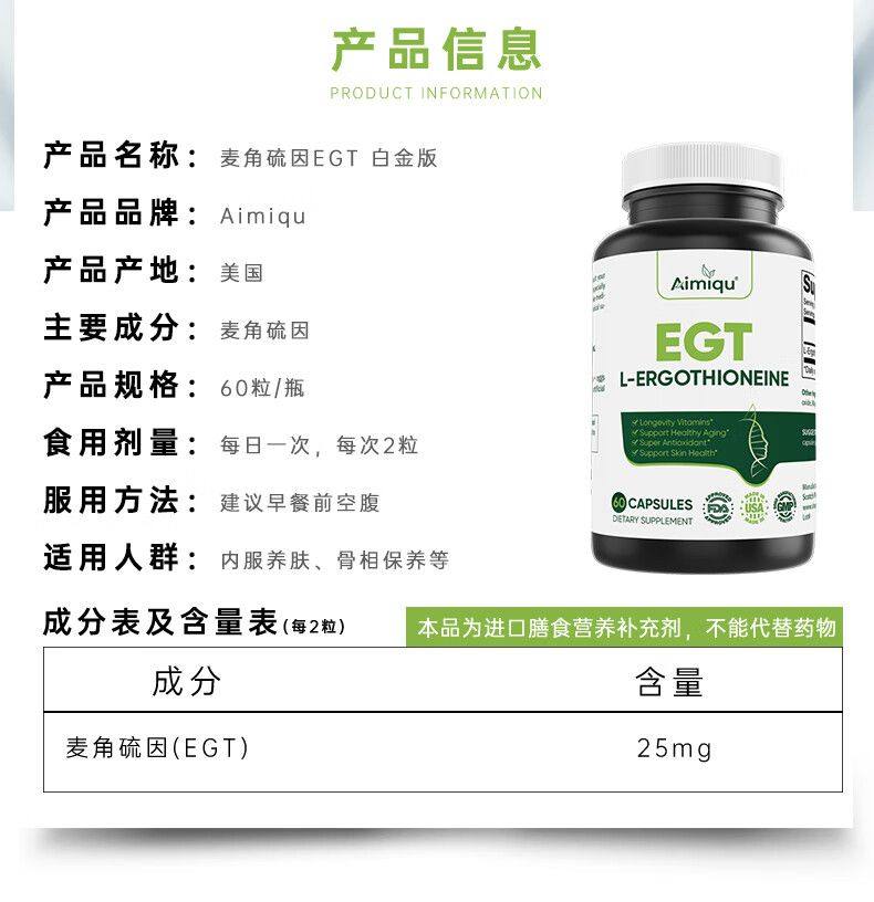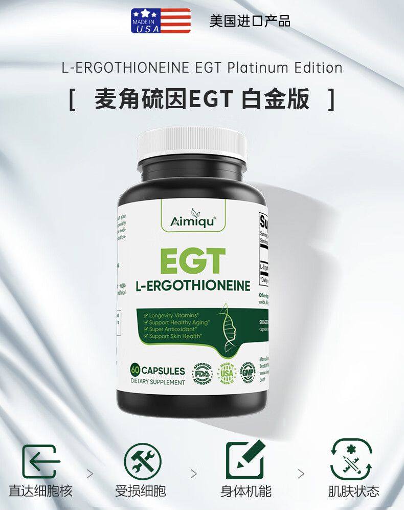 美国进口Aimiqu99高纯度高含量麦角硫因口服胶囊白金版 60粒瓶