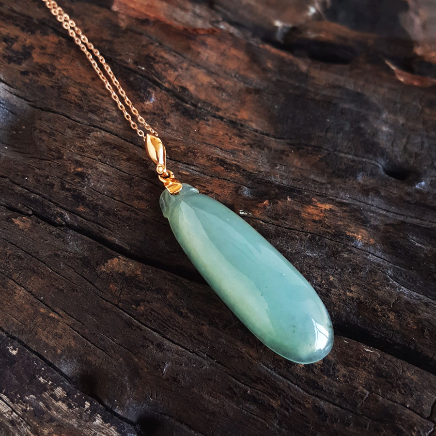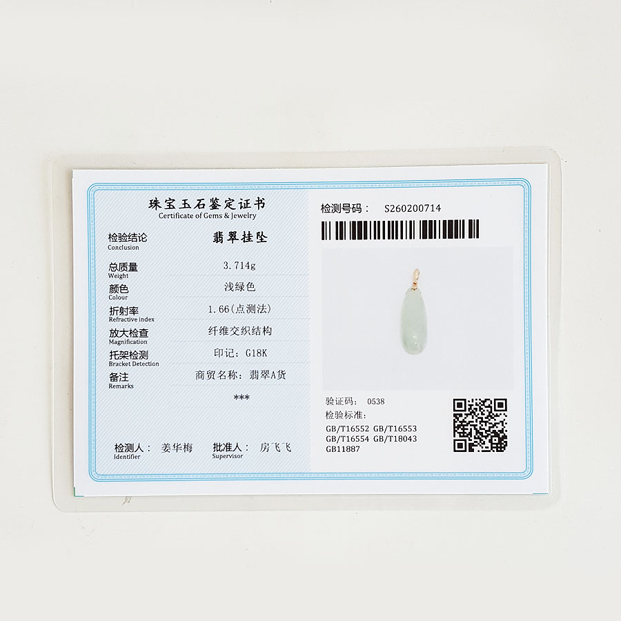【天然正品】A货翡翠AU750玫瑰金镶天然细腻冰种福瓜(瓜瓞绵绵)翡翠吊坠项链100226NJM13