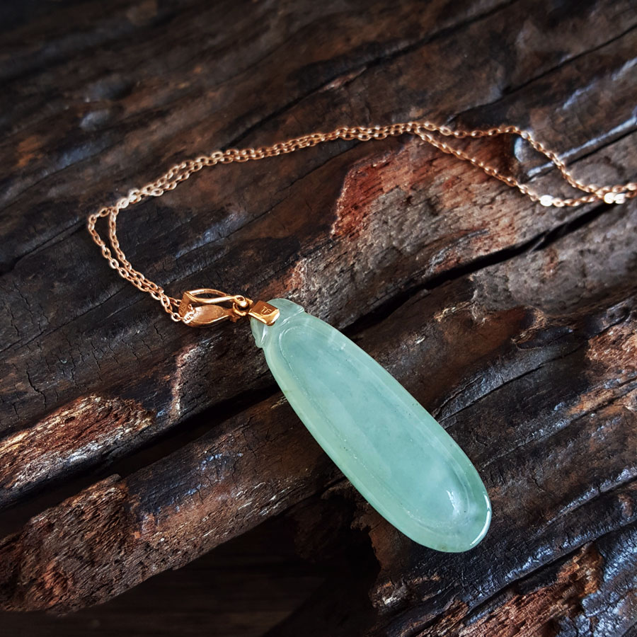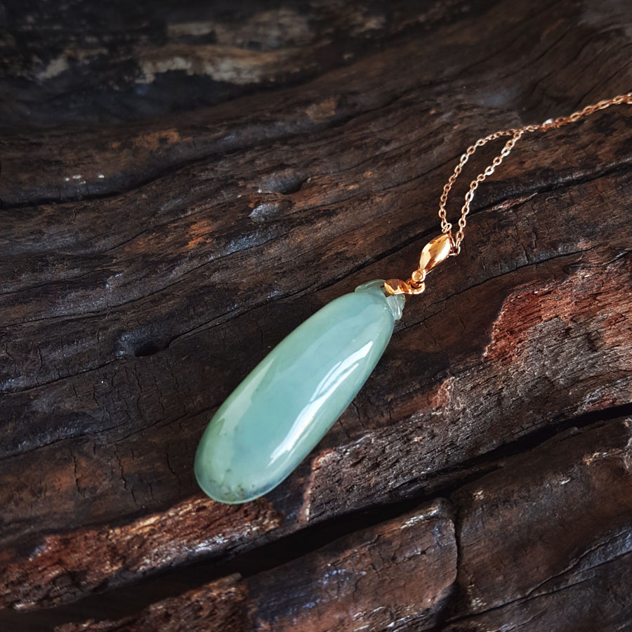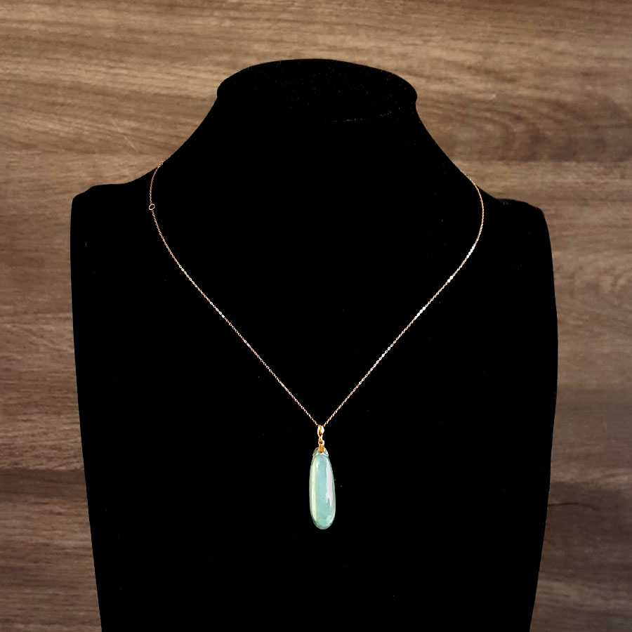 名称 | AU750玫瑰金镶天然细腻冰种福瓜(瓜瓞绵绵)翡翠吊坠项链 |