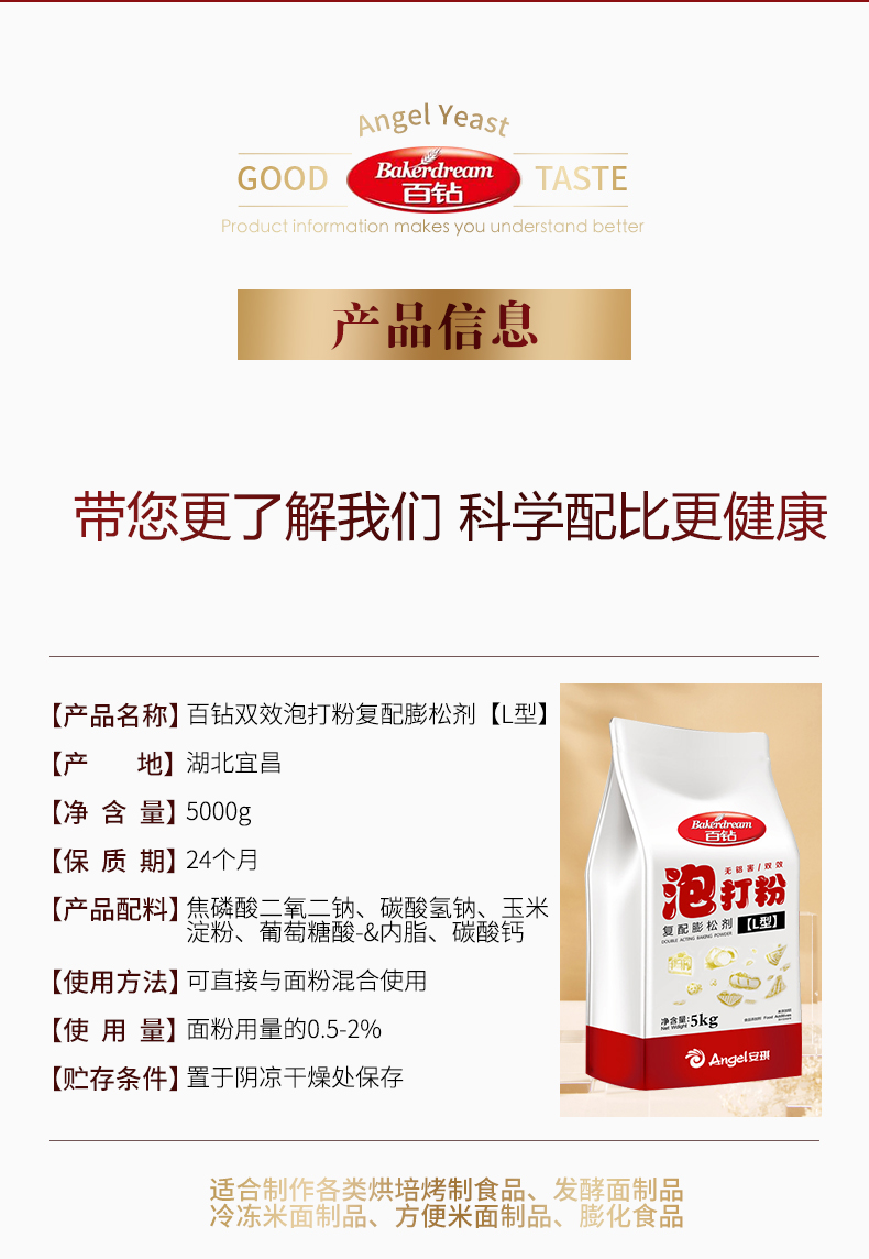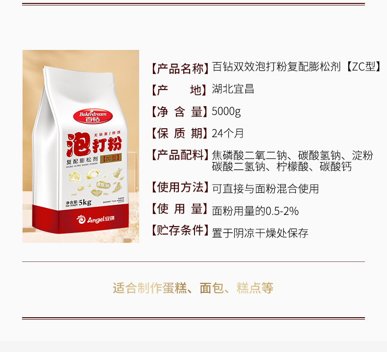 安琪百钻泡打粉ZC型 5kg*2【011】无铝双效复配膨松剂