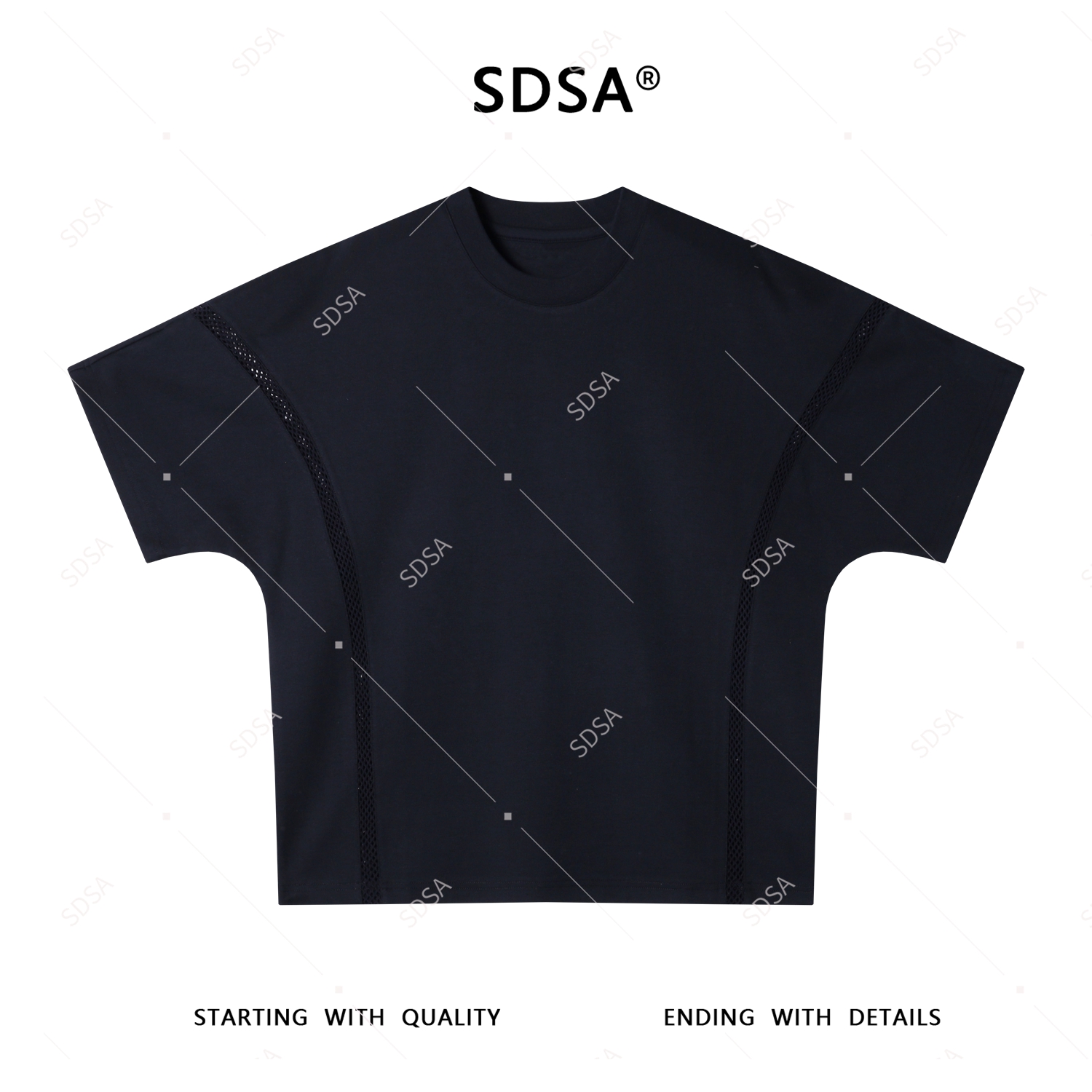 夏季高级感新款男士纯色网格镂空设计短袖T恤痞帅显瘦圆领上衣
