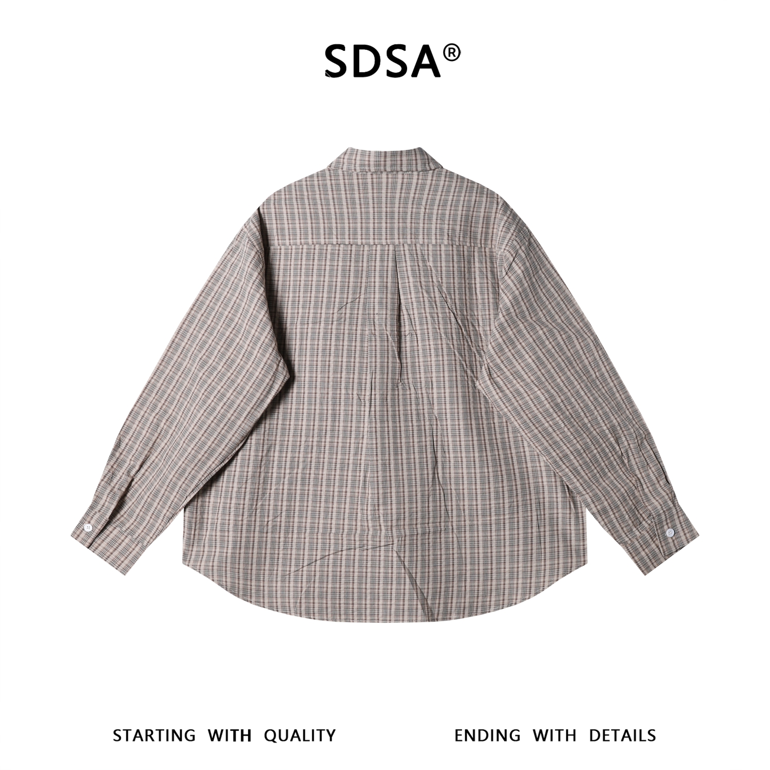 SDSA男装2026新款高贵轻奢格纹爱心刺绣长袖衬衫宽松翻领休闲上衣