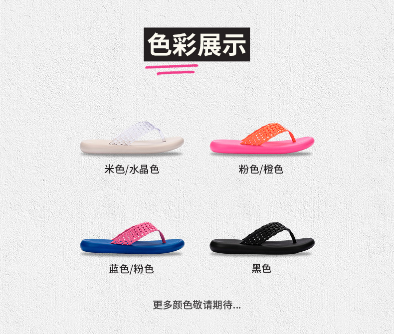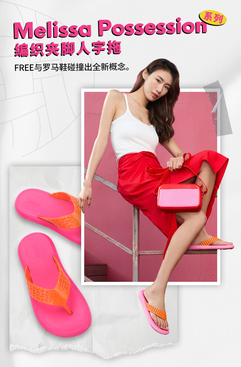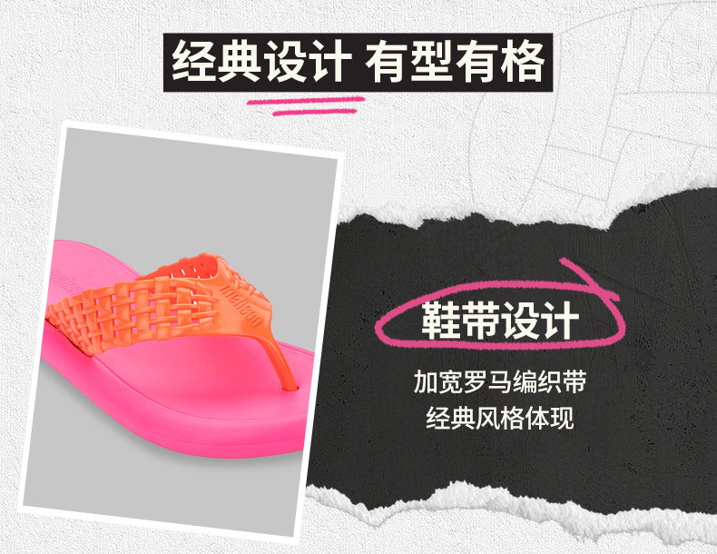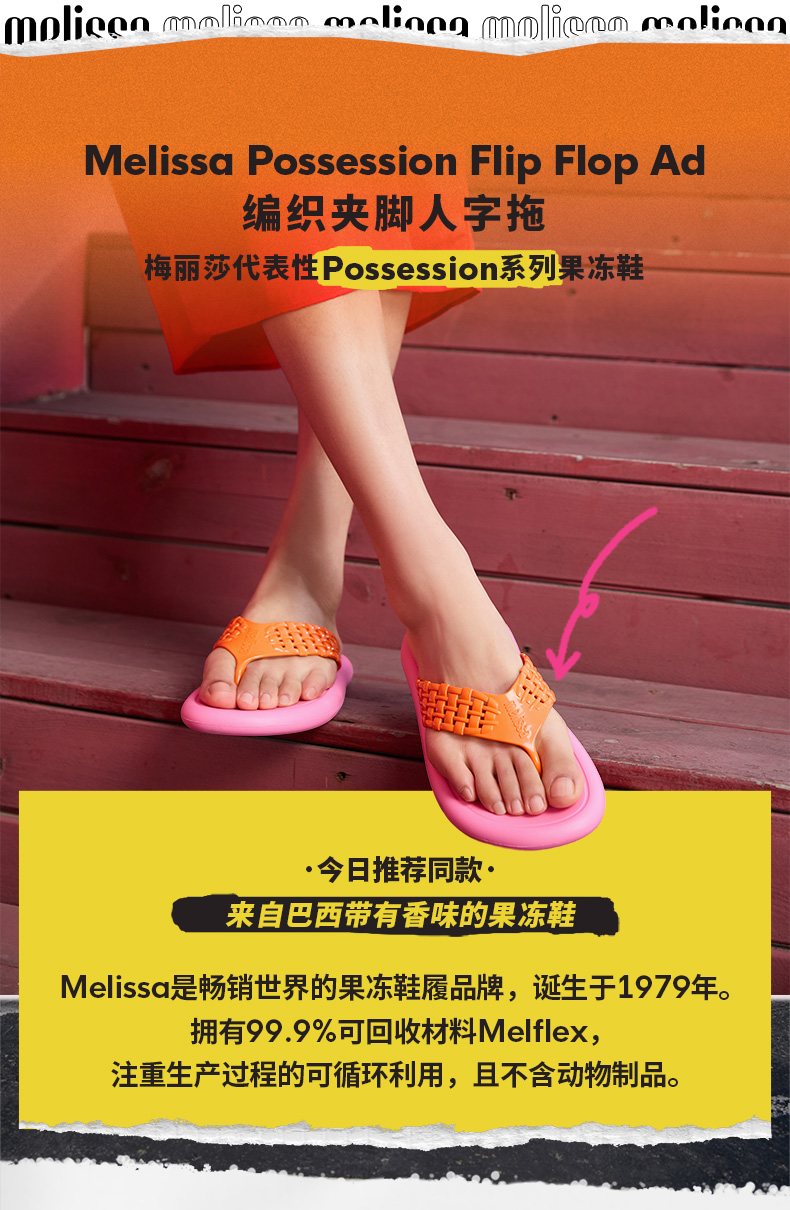 Melissa/梅丽莎 女撞色拼接编织夹脚人字拖软底果冻配色拖鞋35786