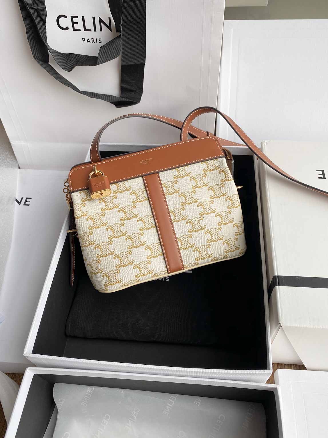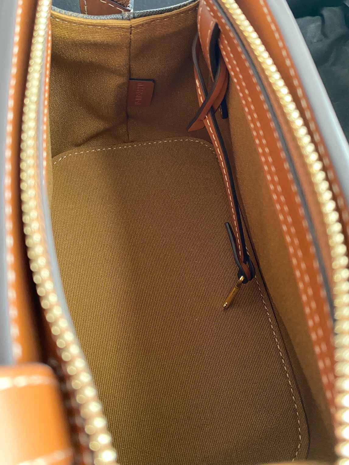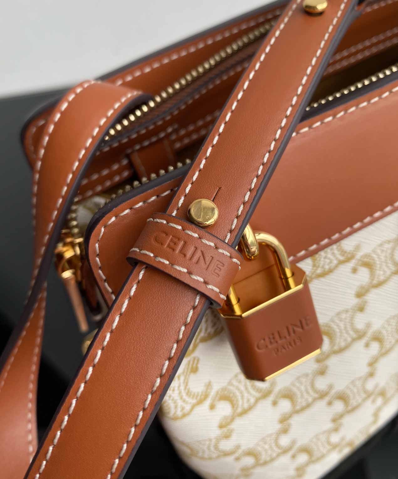 ??TRIOMPHE CANVAS标志印花,牛皮革包边,织物面料衬里,斜挎和肩背,拉链锁闭,可调节皮革肩带