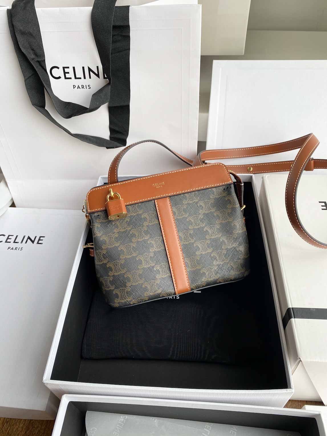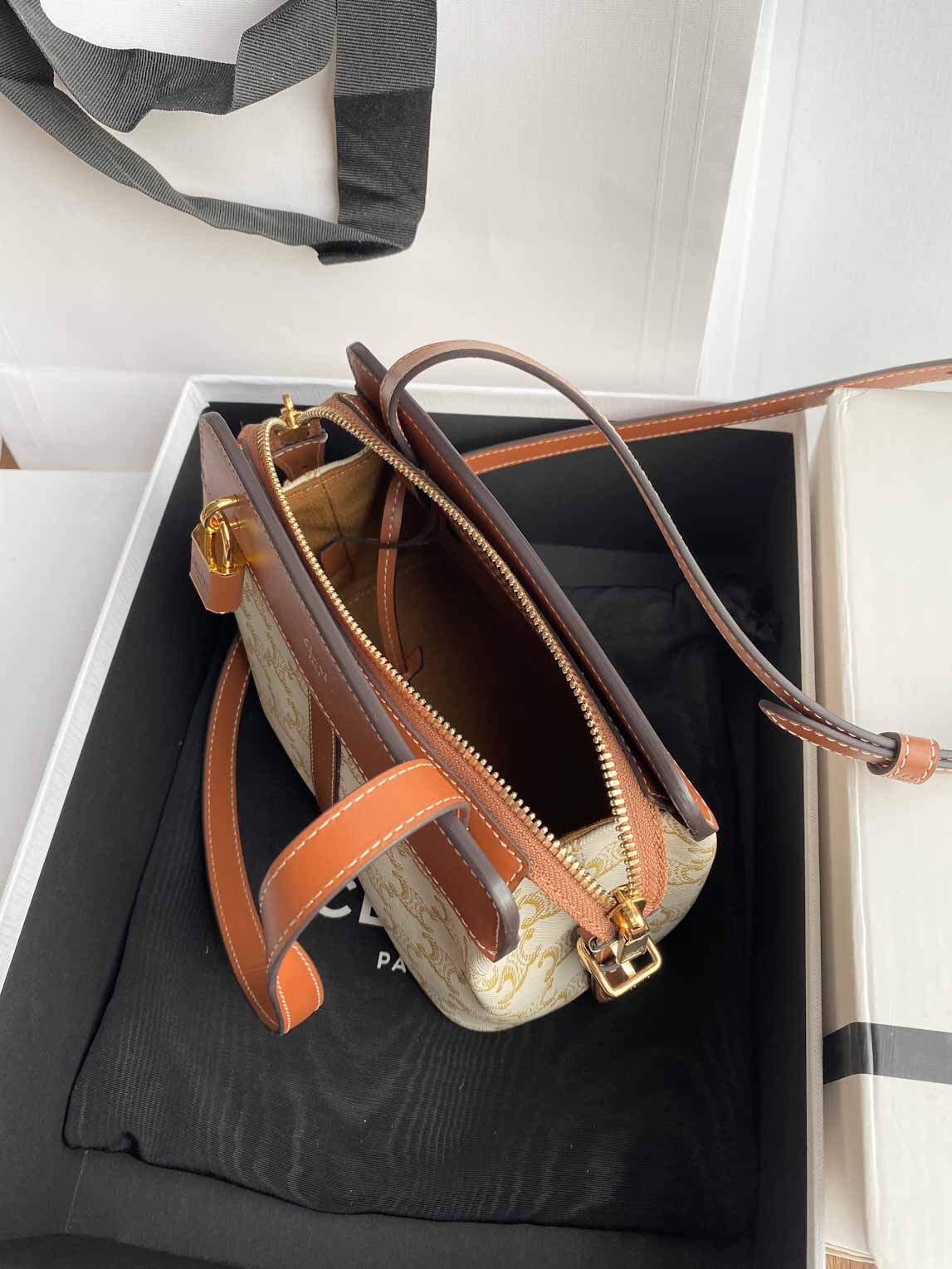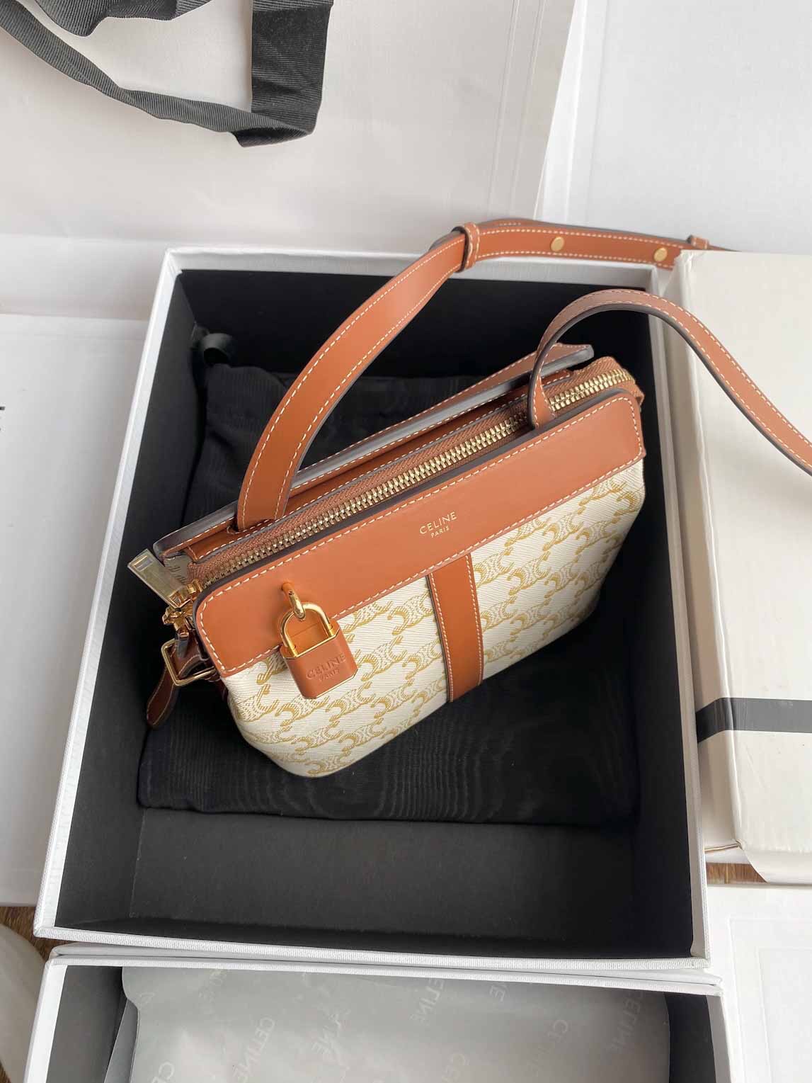 ??TRIOMPHE CANVAS标志印花,牛皮革包边,织物面料衬里,斜挎和肩背,拉链锁闭,可调节皮革肩带