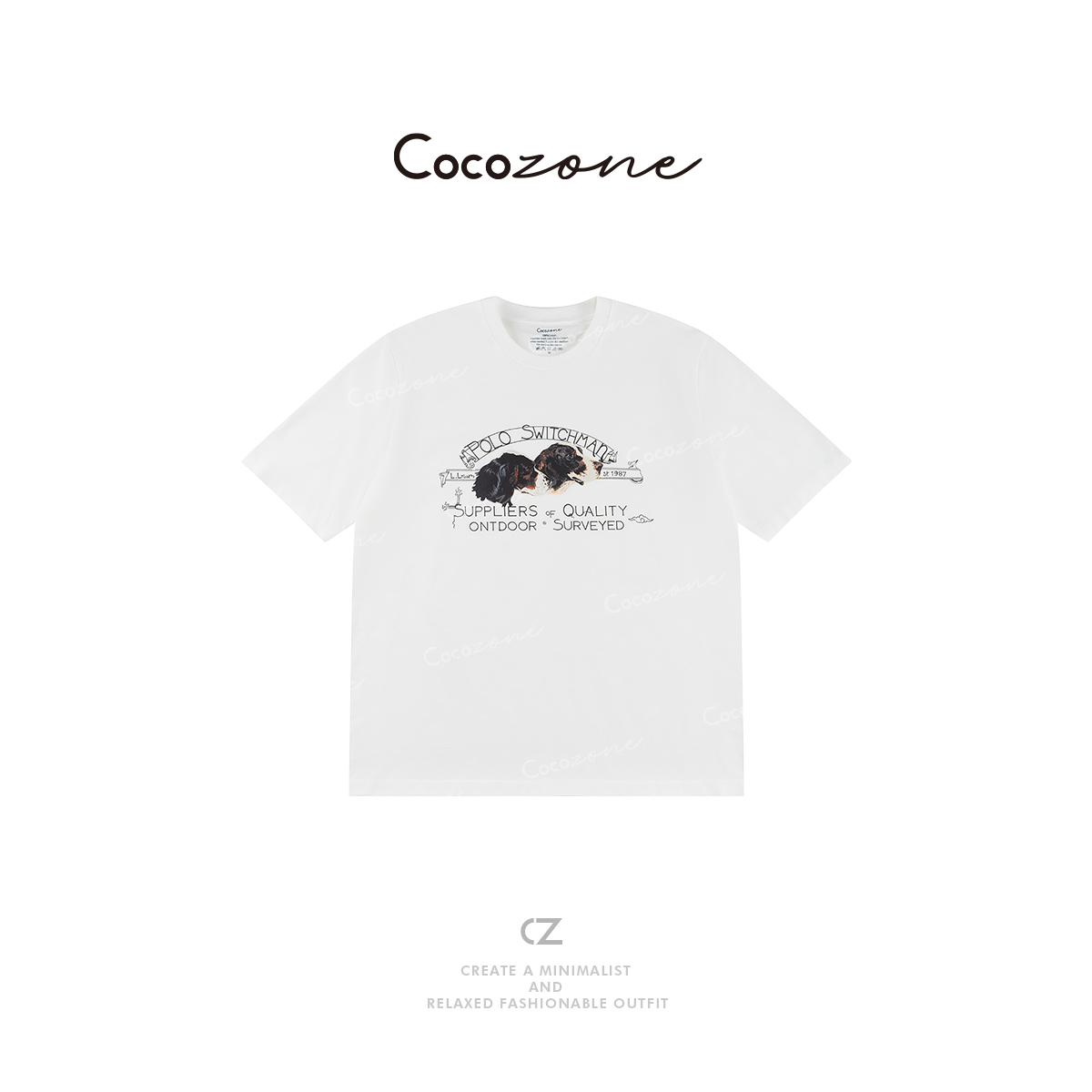 COCO ZONE 100棉美式字母图案印花圆领短袖T恤CD1A0033