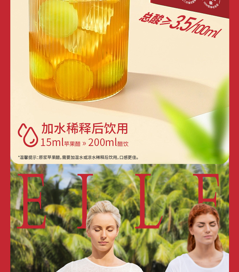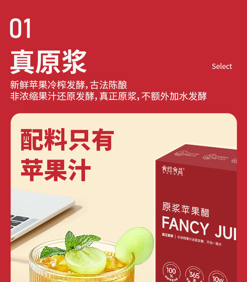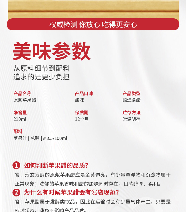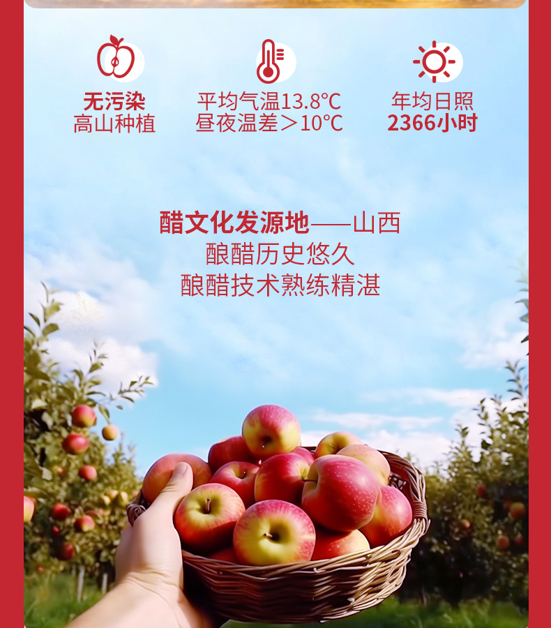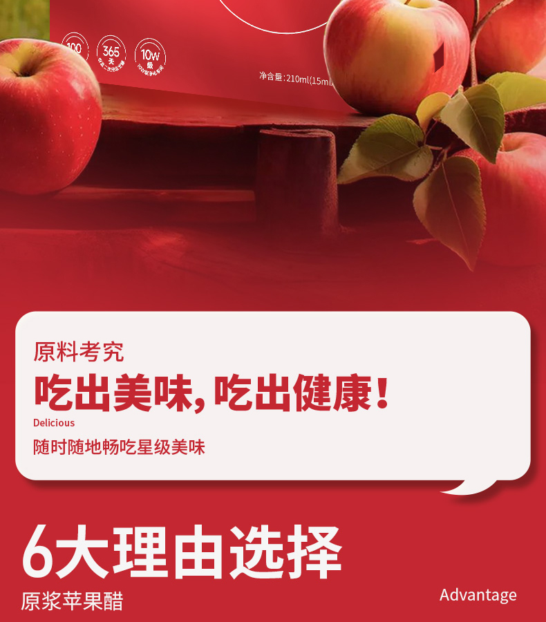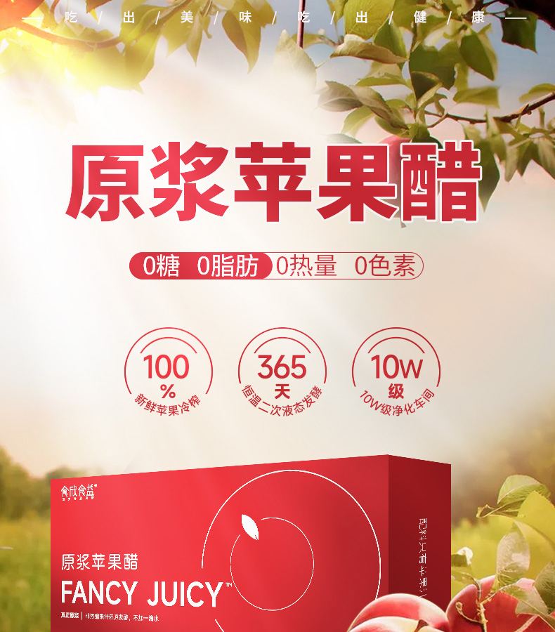 食欣食益100%原浆苹果醋 0糖0脂0卡 健康口感古法工艺210ml