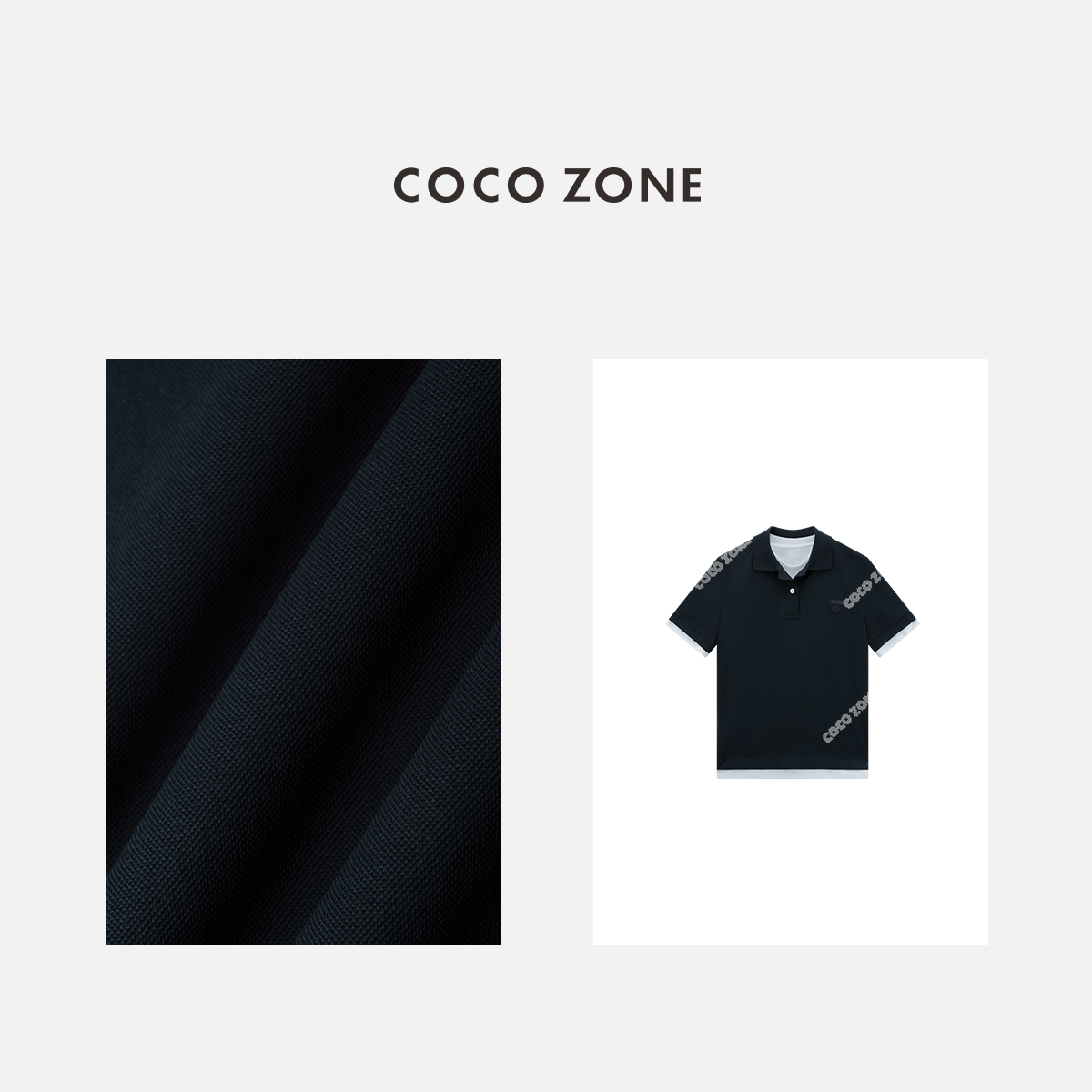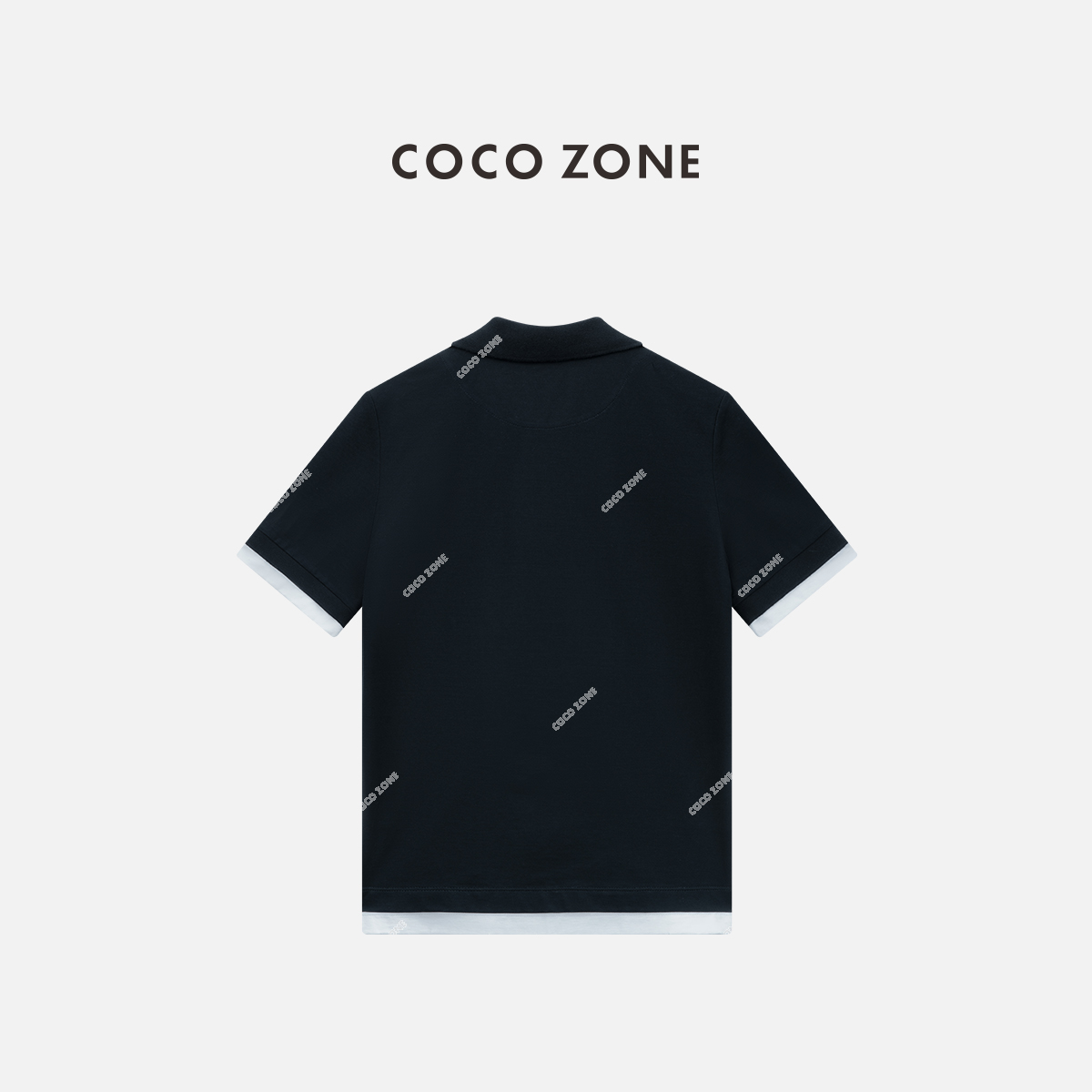 COCO ZONE 100棉翻领T恤假两件设计感短袖上衣CC1B1529