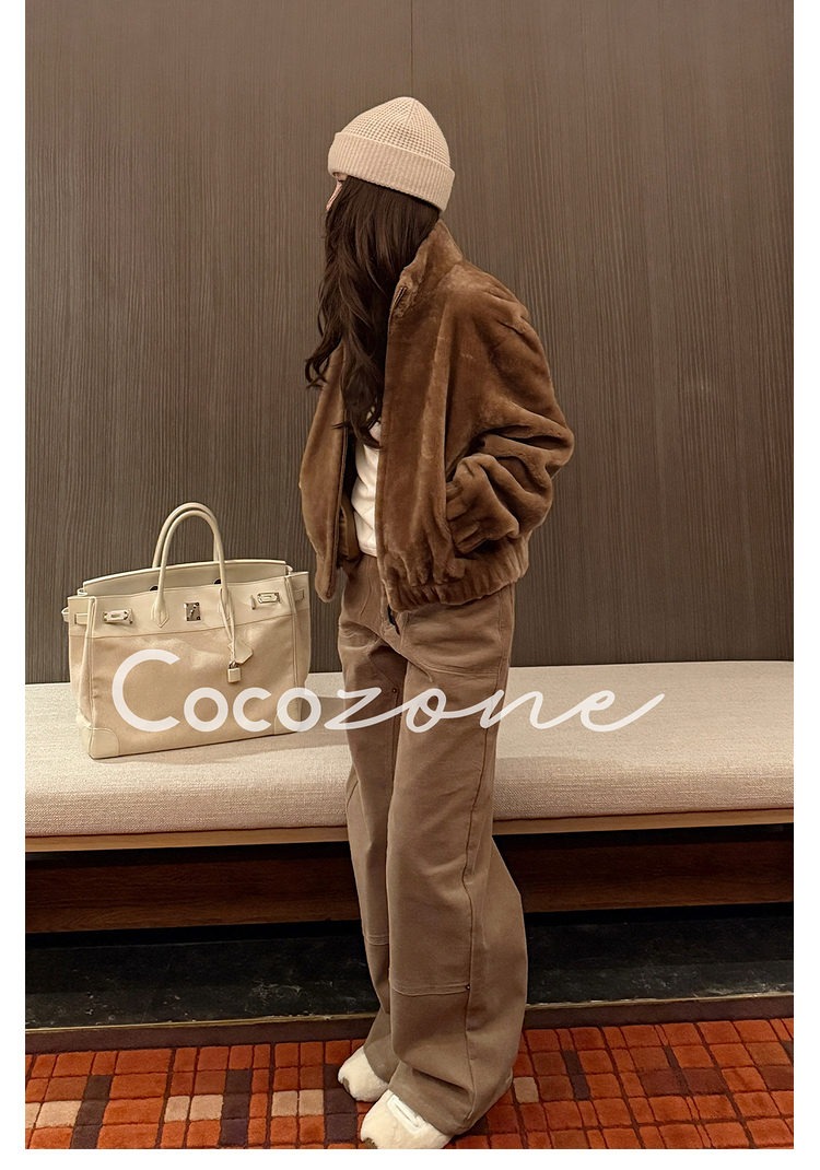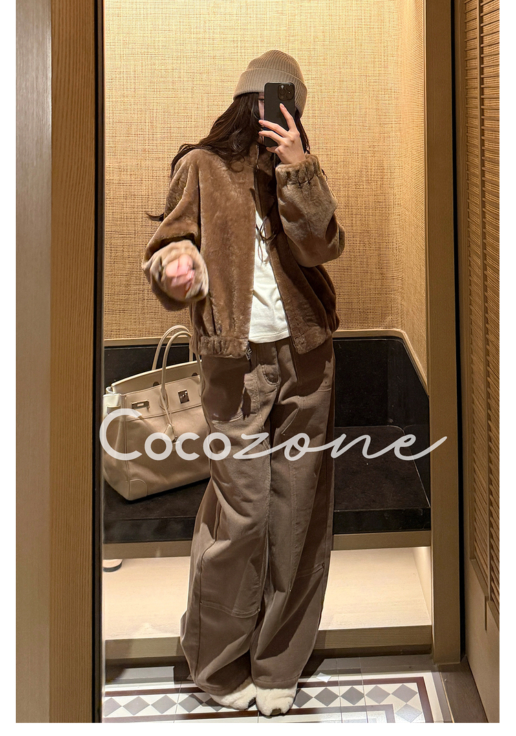 COCO ZONE 刘 一一"贝果"100羊毛革立领双拉链皮草CD2A3097