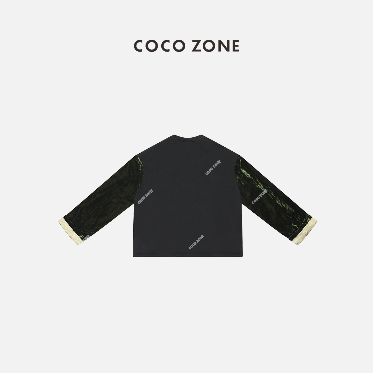 COCO ZONE2024复古新中式丝绒拼接撞色翻袖圆领卫衣CC2A0147
