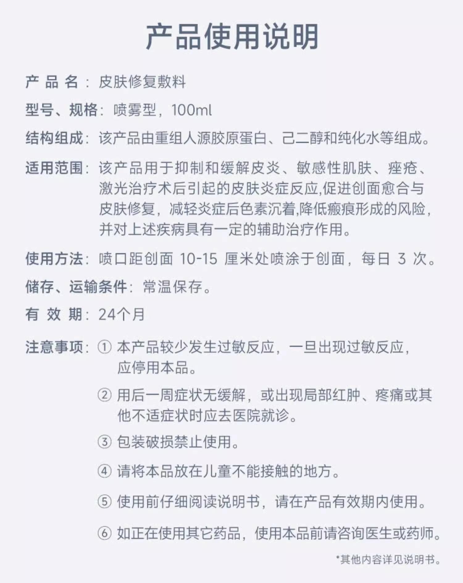 【皮肤修复】绽妍皮肤修复敷料 重组胶原蛋白喷雾剂100ml 修复保湿 即时舒缓