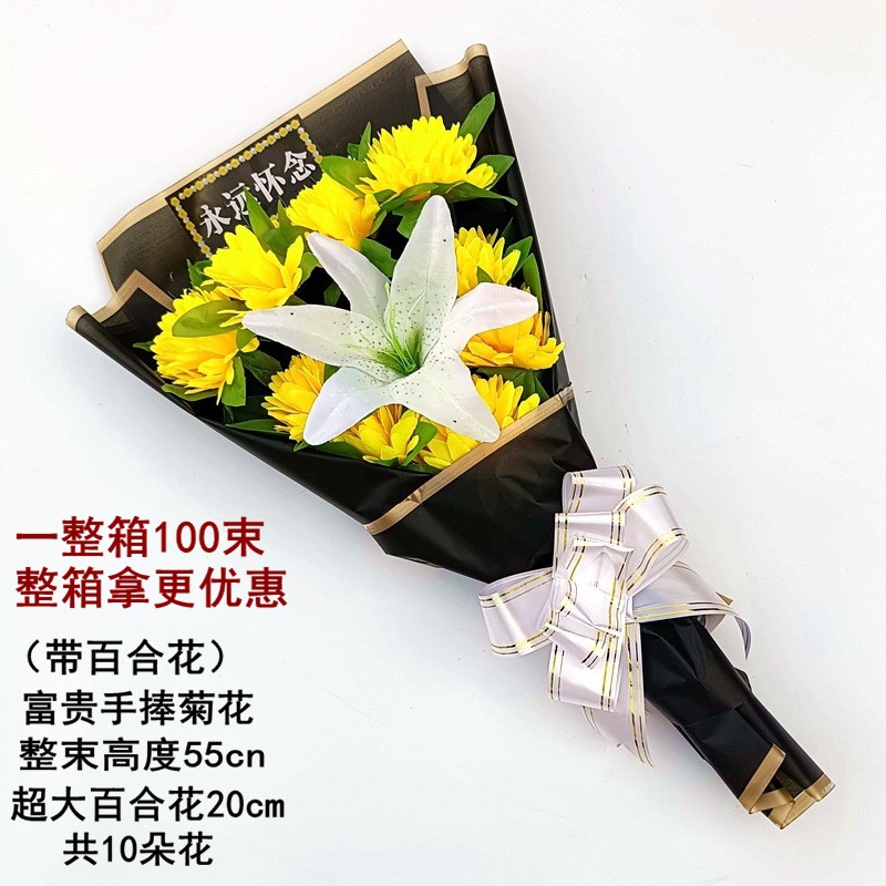 百合手捧-黄色清明节祭祀用品花扫墓花祭祀仿真花束上坟手捧塑料假花墓地摆放花
