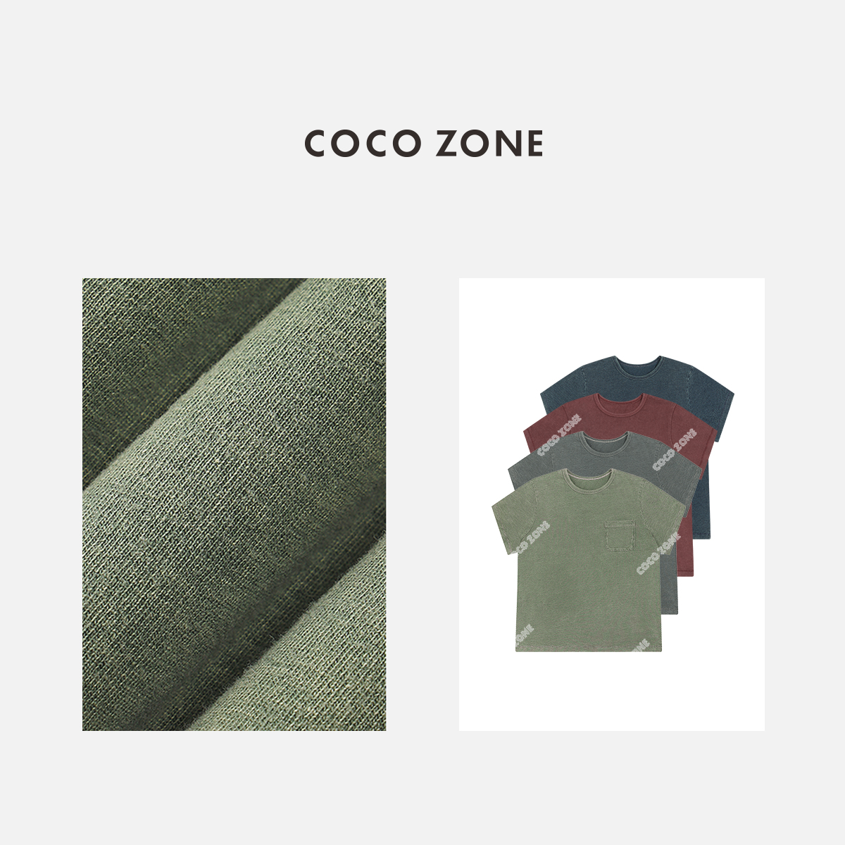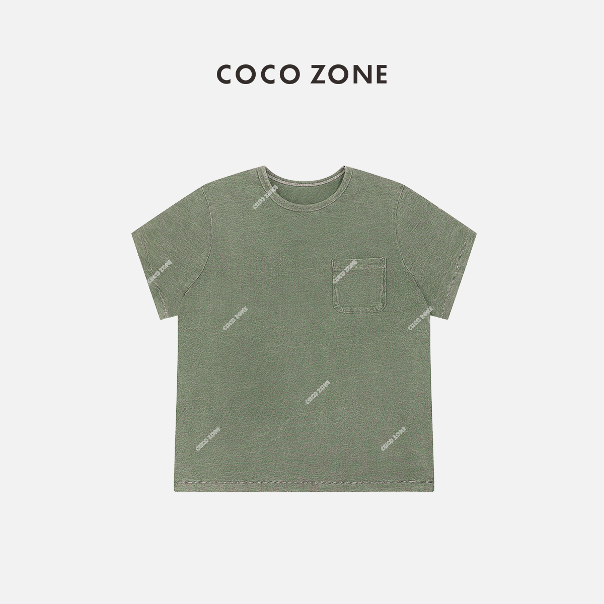 COCO ZONE 圆领简约口袋上衣纯色做旧百搭短袖T恤24C10042