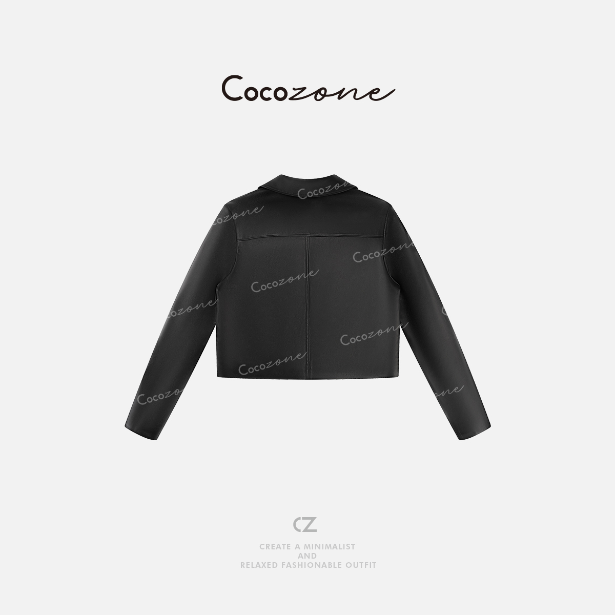 COCO ZONE 刘一一 “双排扣皮衣”层次自然纹路皮衣外套CD2A1358