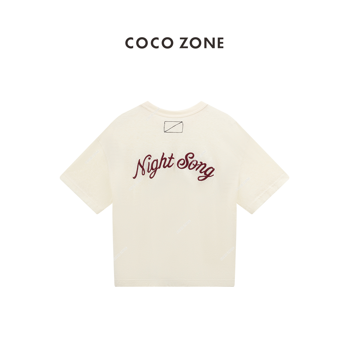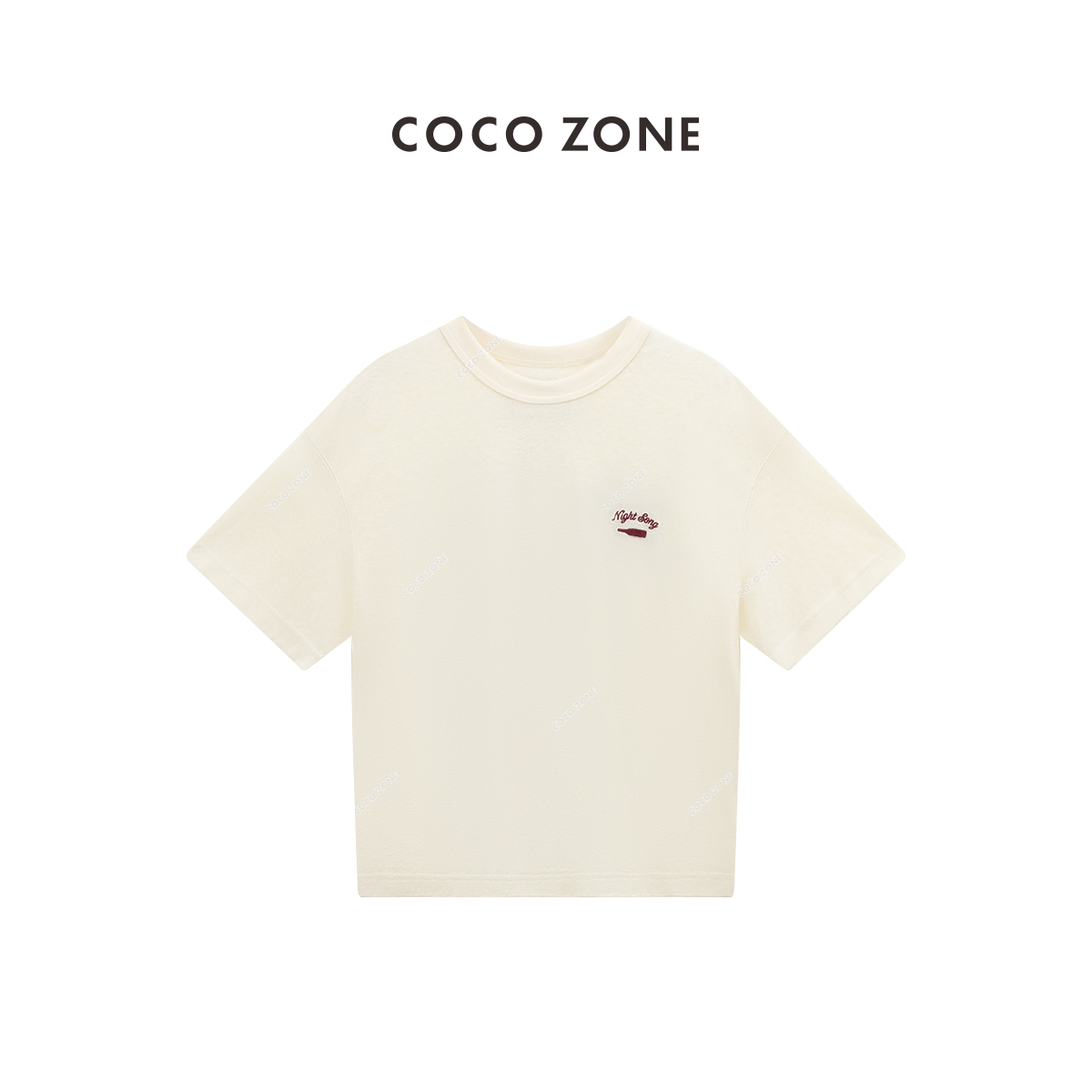 COCO ZONE"可乐T"夏季字母刺绣休闲短袖针织衫时尚圆领百搭上衣CC1B1189
