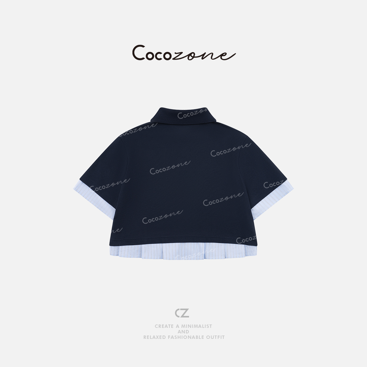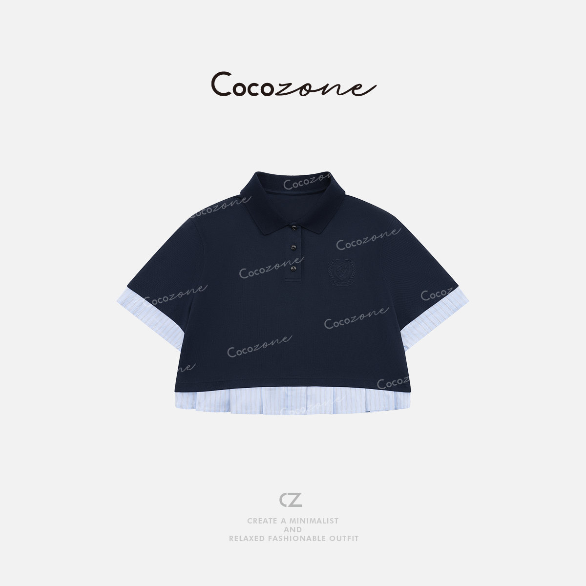 COCO ZONE 刘一一 【莱赛尔混纺】翻领学院风假两件T恤 CD1A0799