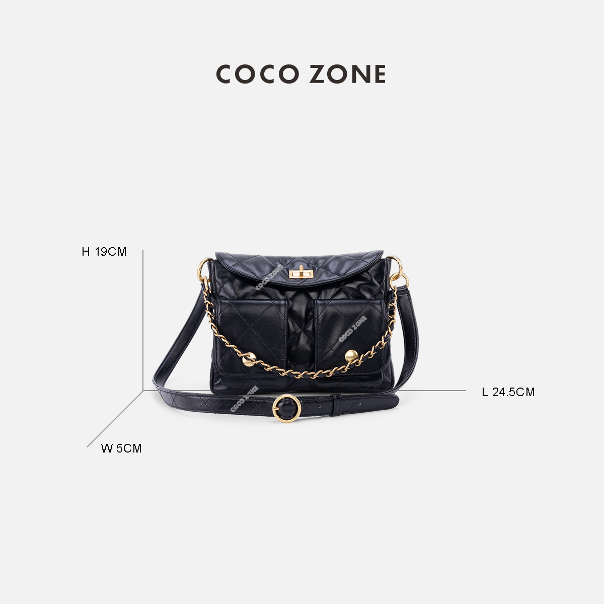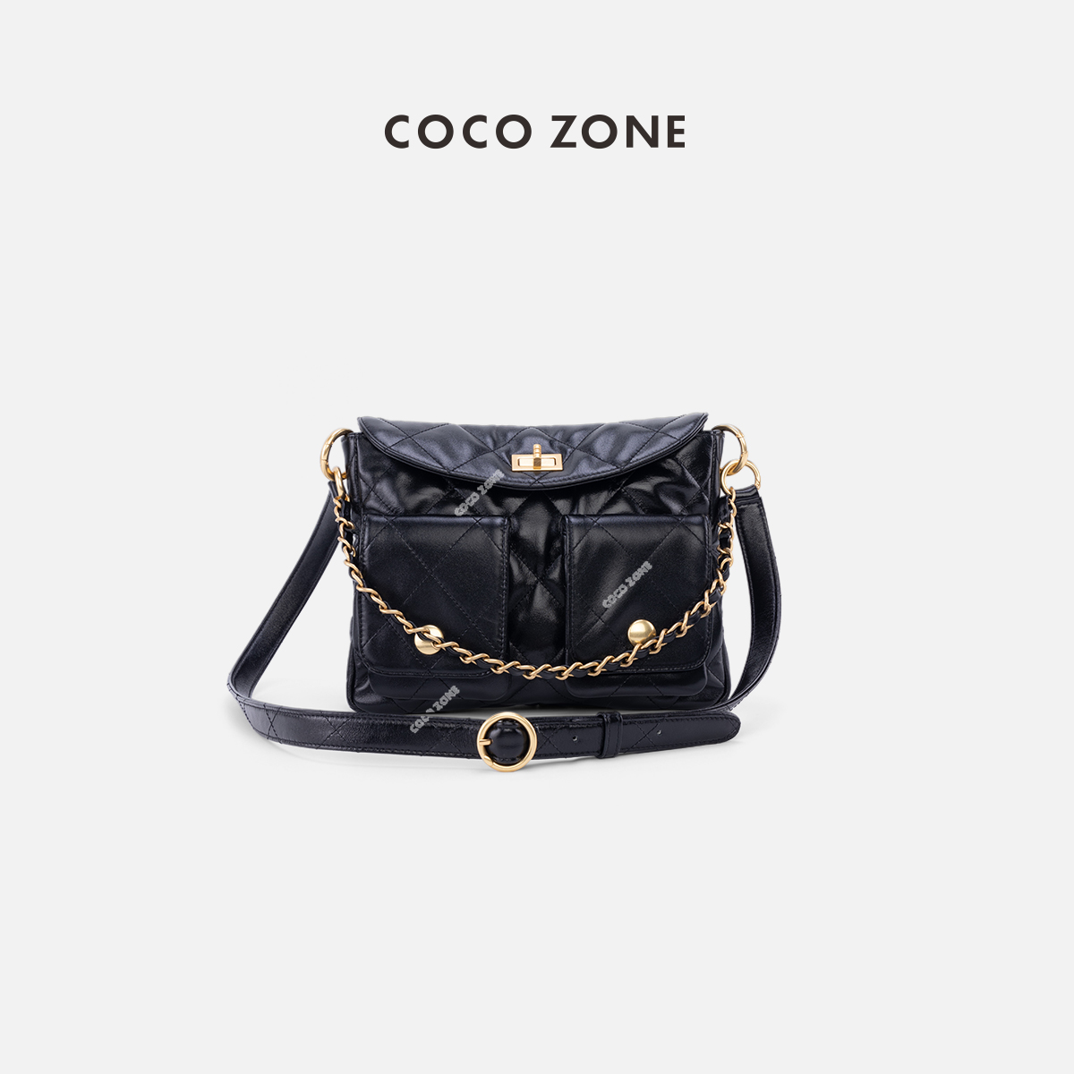 COCO ZONE2024小香风菱格链条单肩包多口袋设计斜挎包CC2A0345