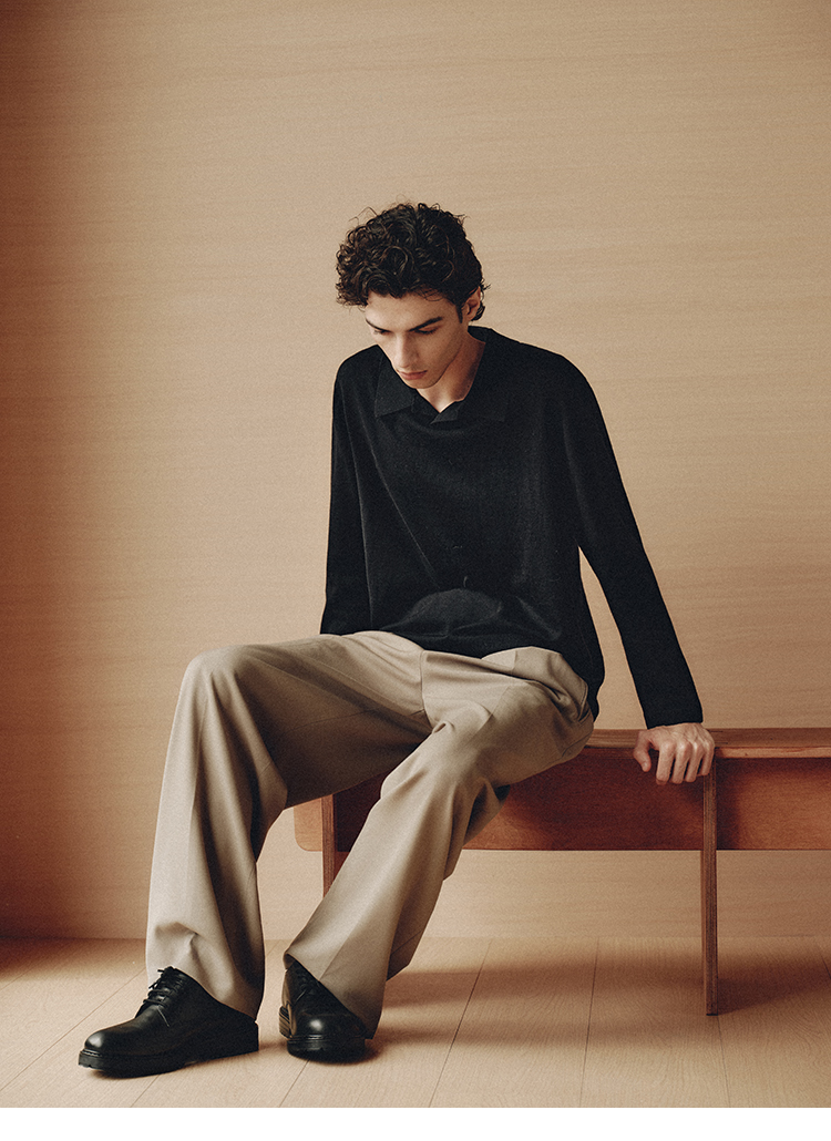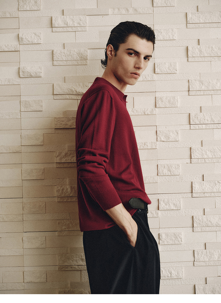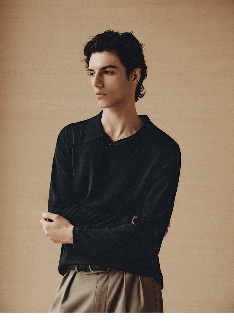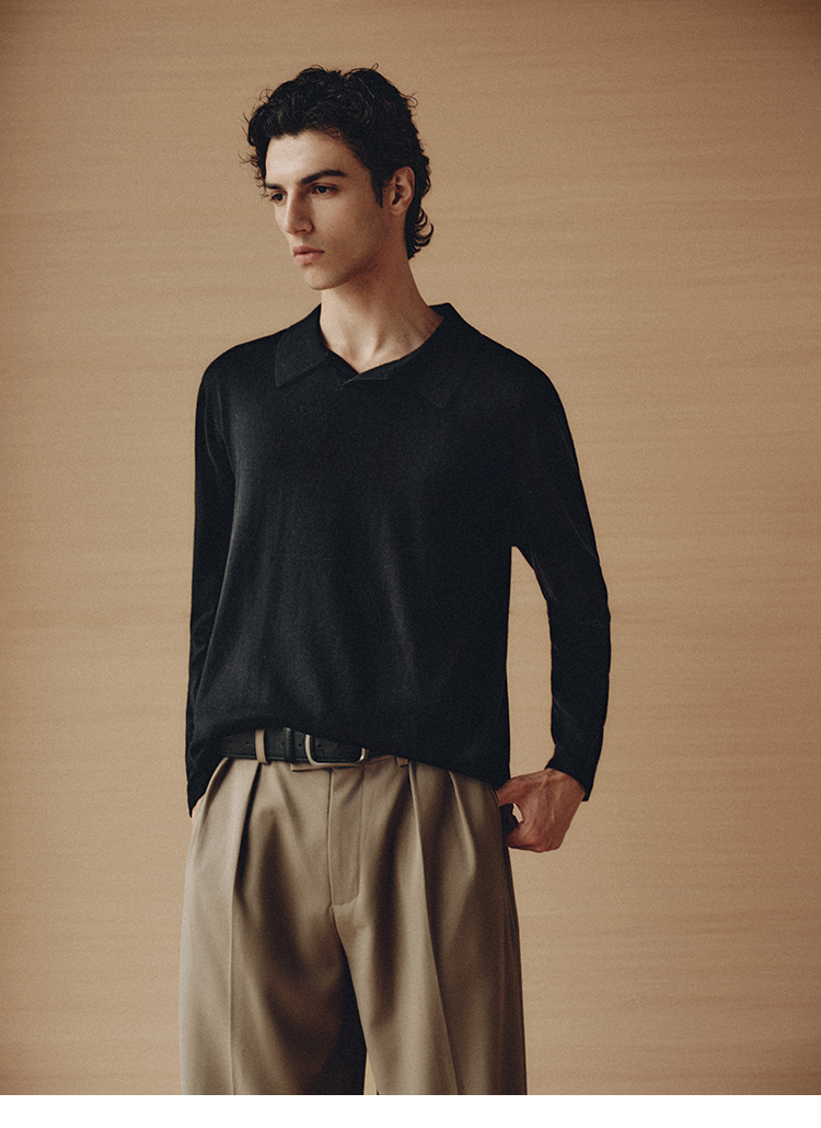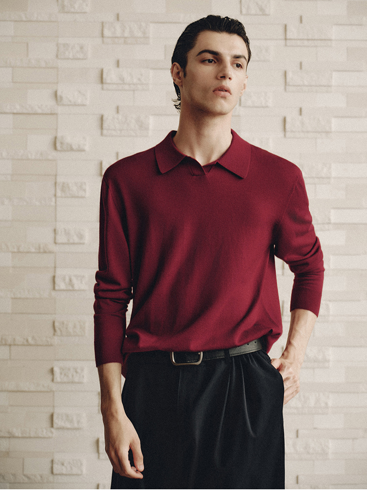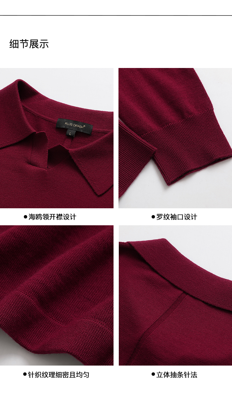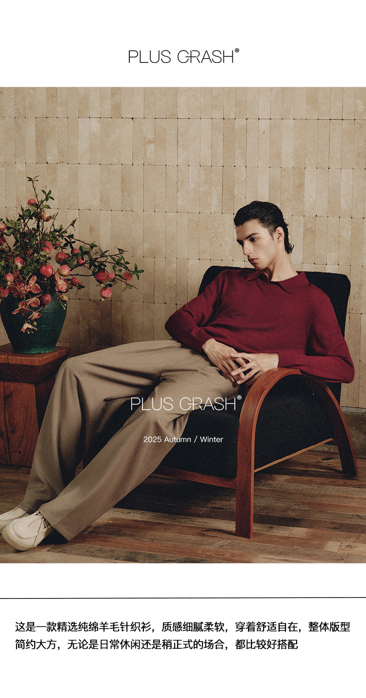 PLUS CRASH2025秋冬新款100%极细美丽诺羊毛一体海鸥领针织羊毛衫