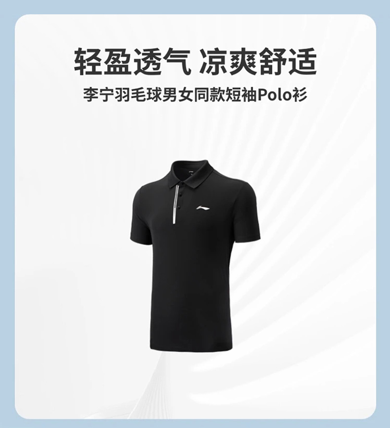 李宁新款羽毛球服男女同款短袖APLV485比赛上衣透气舒适polo衫