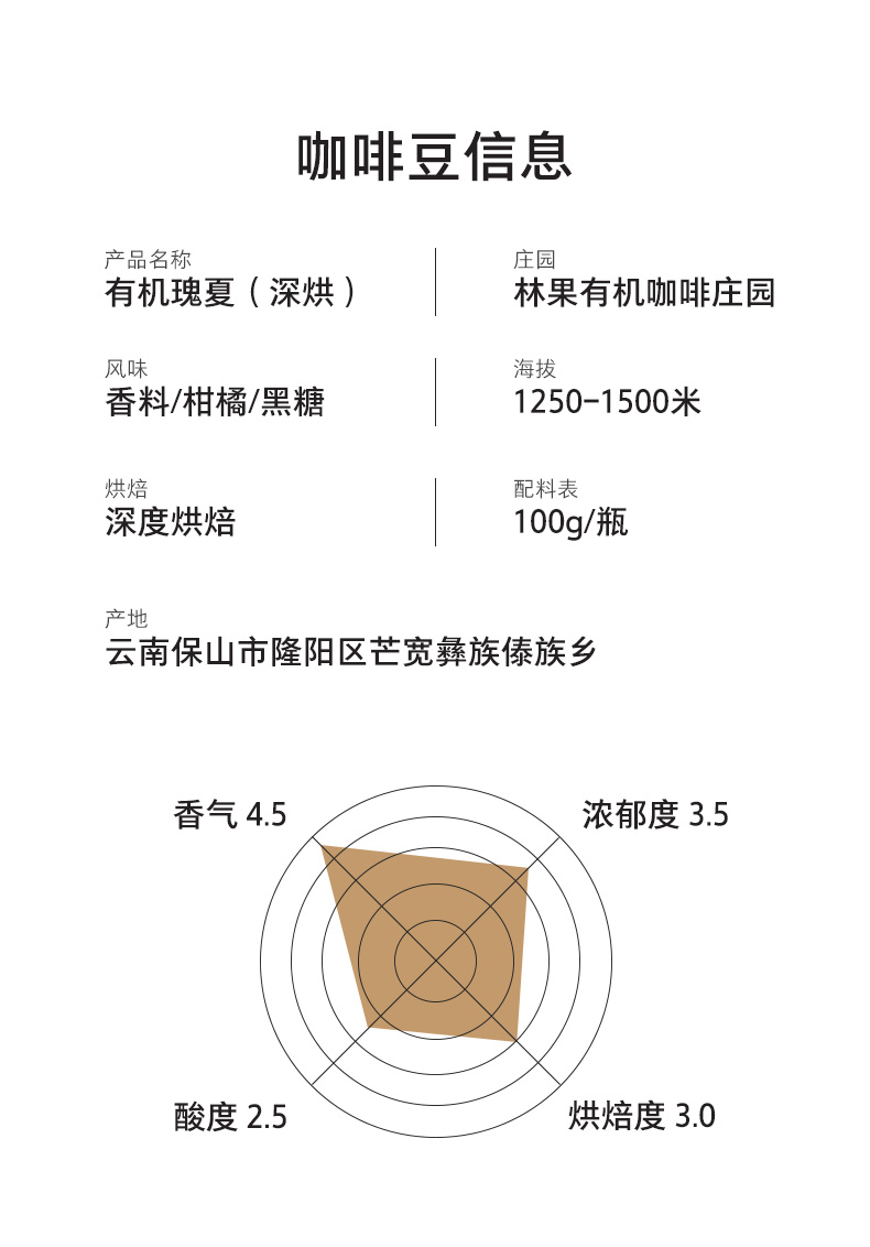 有机瑰夏(深烘)焙炒咖啡豆 云南有机瑰夏咖啡豆