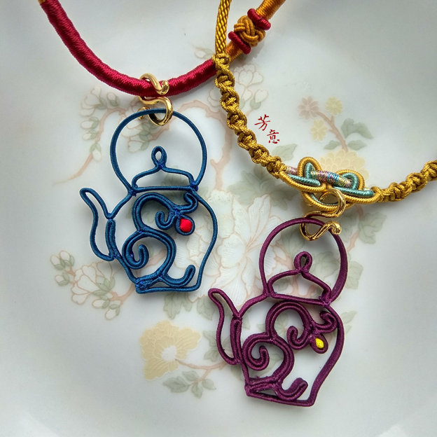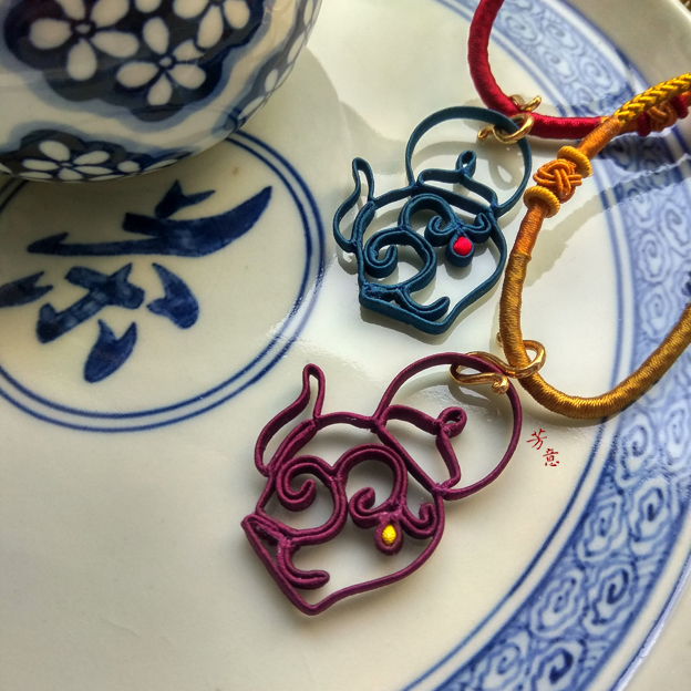 材质:真丝,珐琅铜丝,新疆长绒棉,黄铜S扣,可调节中国结手工绳圈