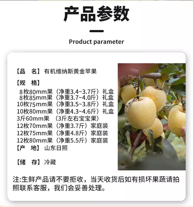 【厂商直发】有机维纳斯黄金苹果果肉脆甜多汁果型饱满新鲜采摘包邮