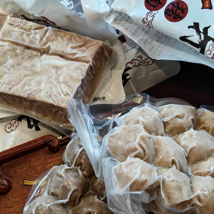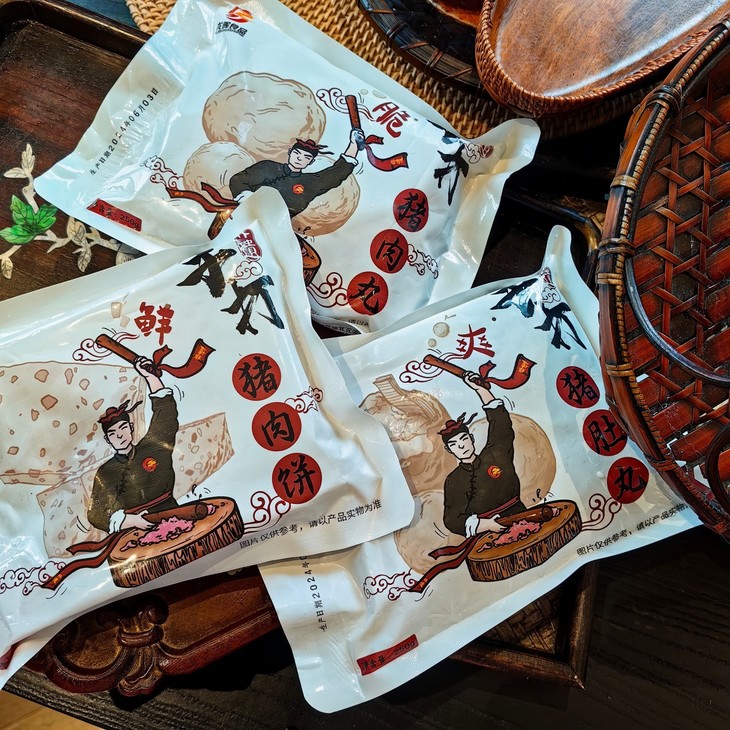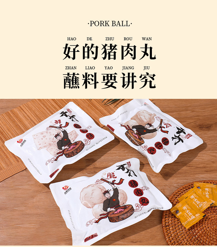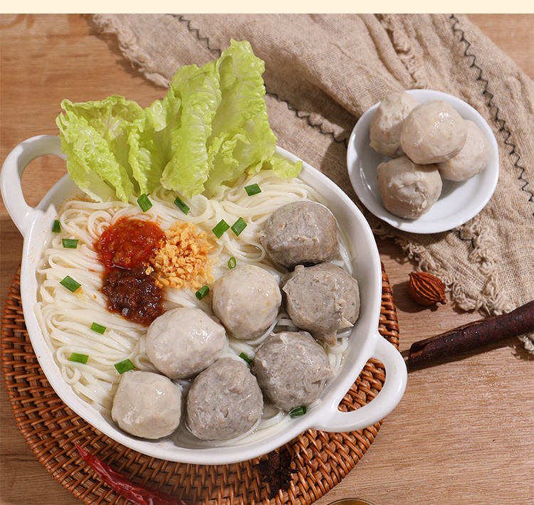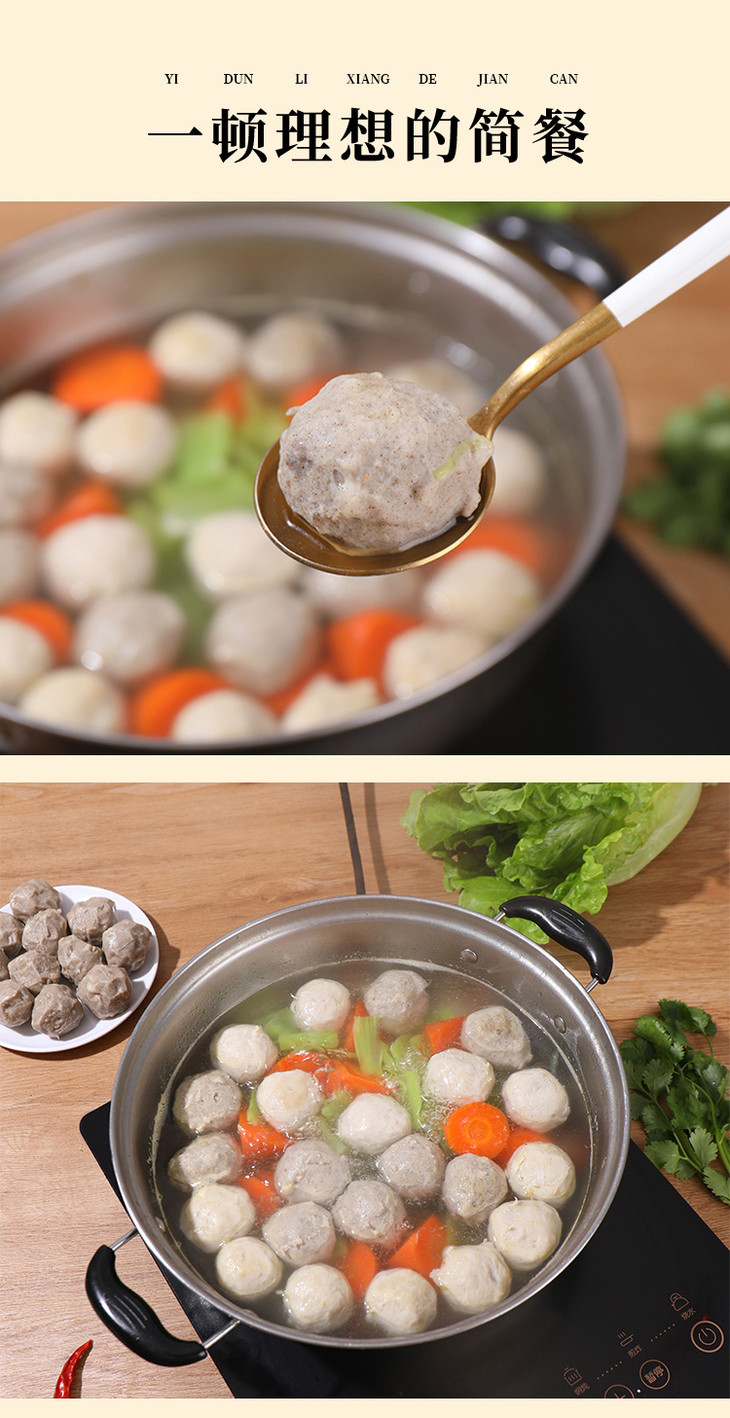 肉丸是250g的真空包装,不知道吃什么时,就来几颗,加几片青菜往锅里一丢,无需复杂的配料,一碗鲜掉眉毛的靓汤就出锅了!加点粿条面条,直接就是一顿饭饭!除了猪肉丸,还有猪肚丸、猪肉饼可以选择哦!猪肚丸是在猪肉丸的基础上加入了猪肚,咬下去嚼劲更足!肉饼是200g/包,不仅能用来煮汤煮火锅,切薄片用空气炸锅一炸或者用平底小锅一煎,也是特别美味!