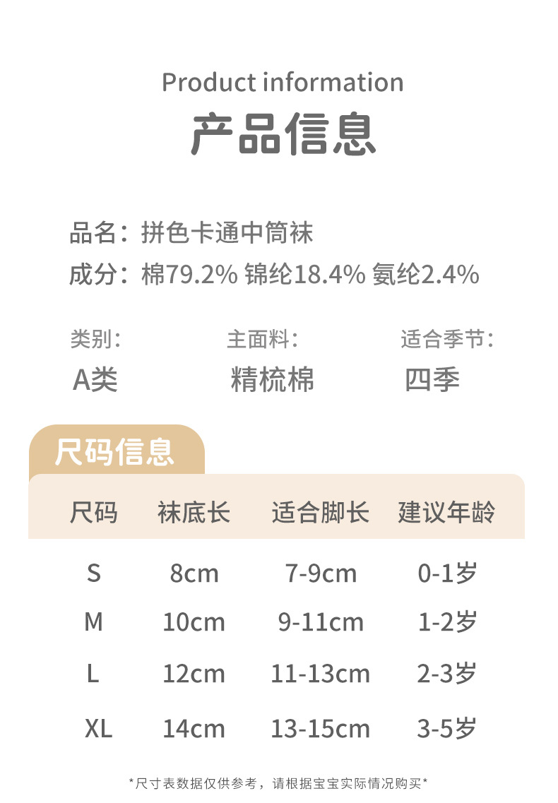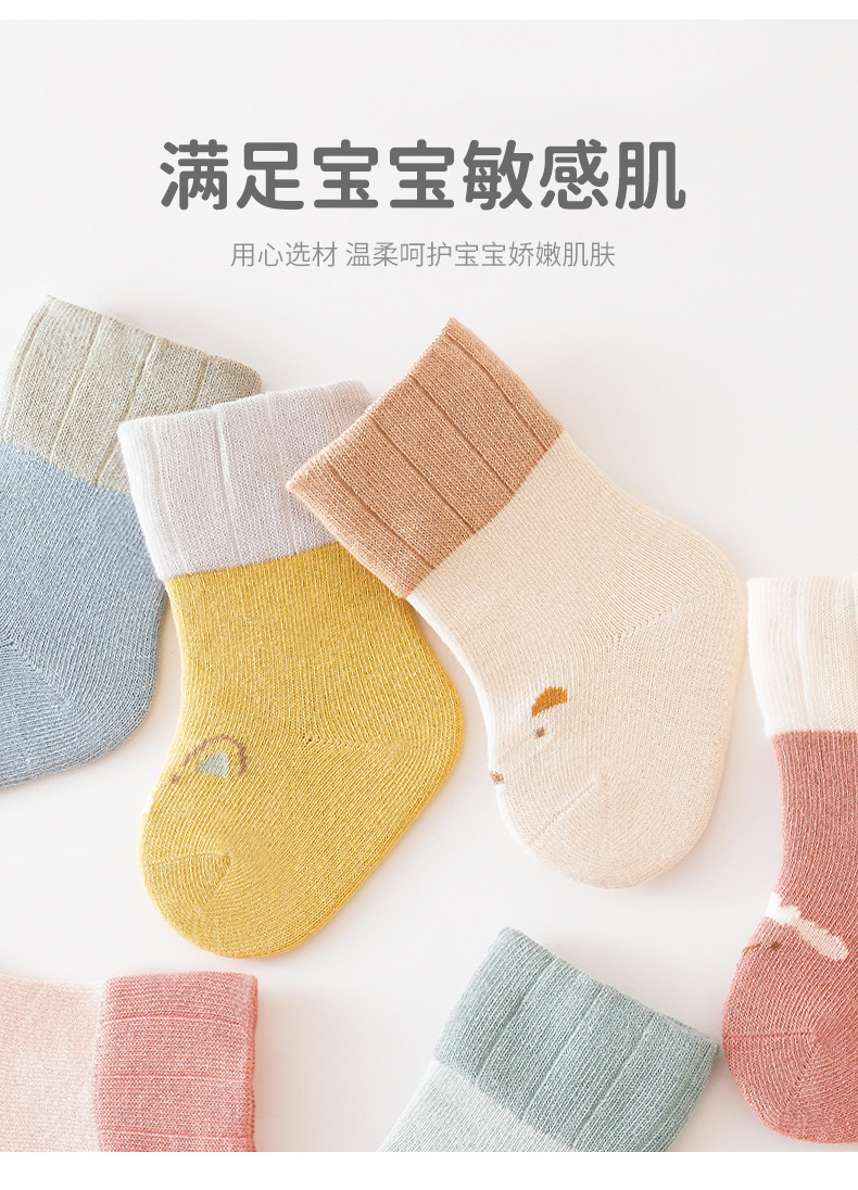 【3双组合装】23秋冬卡通拼色宝宝袜儿童袜子男童女童无骨中筒棉袜a类婴