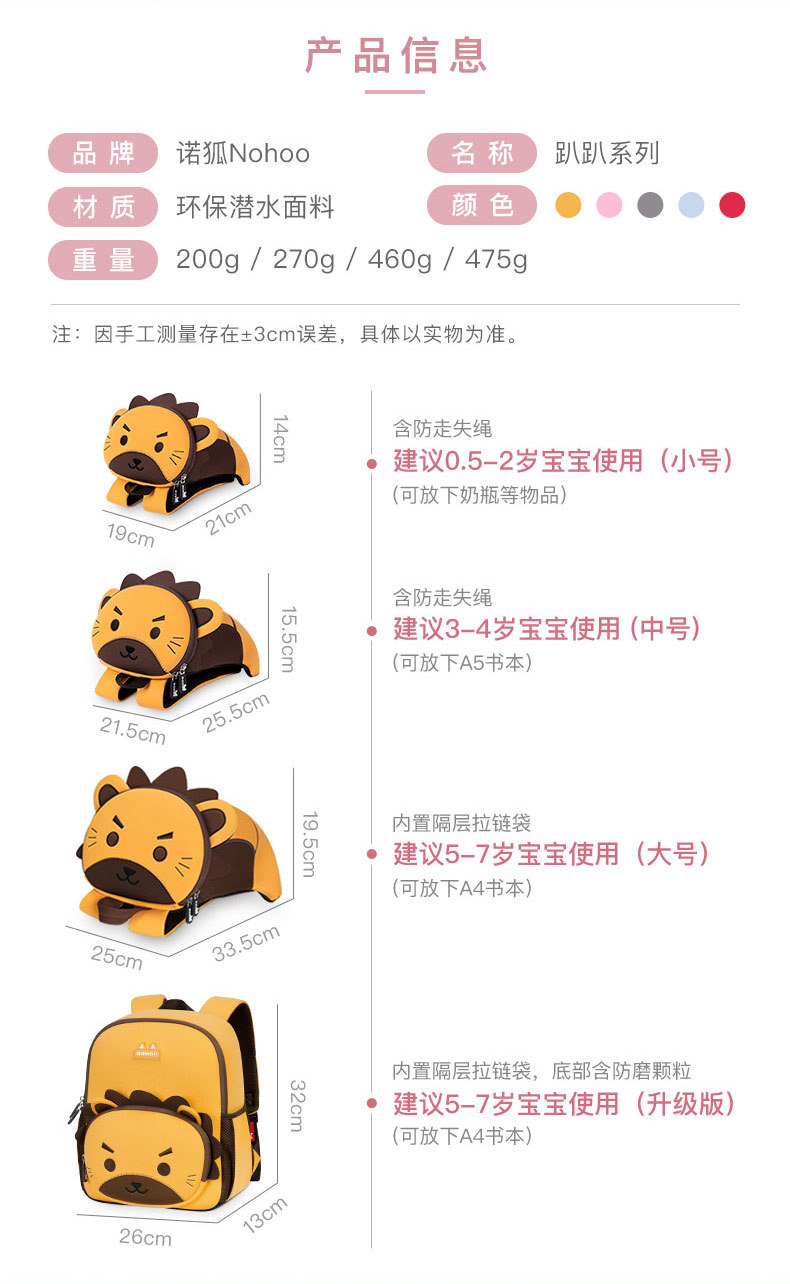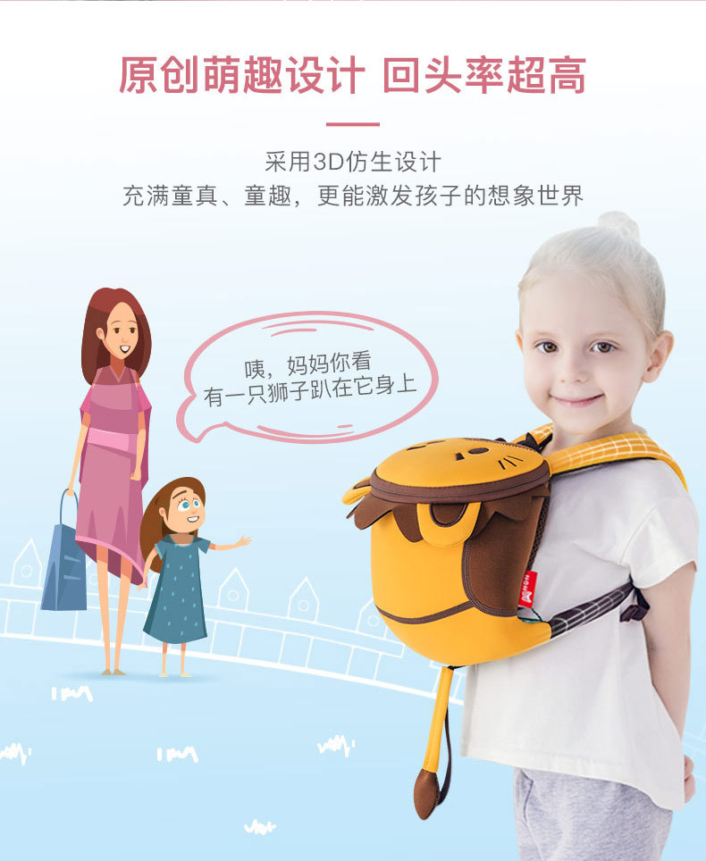 【萌娃出街不怕丢 安全防走失背包】诺狐婴幼儿园书包男女宝宝1-3-6岁防走失背包儿童小书包女童包包