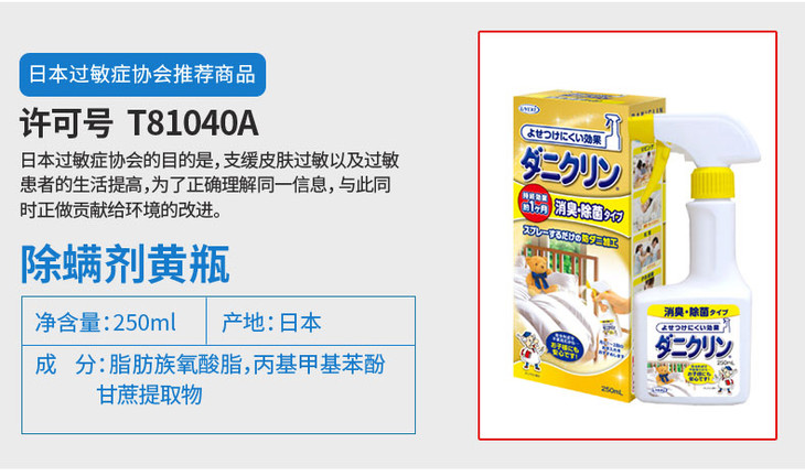 〖日本〗进口UYEKI金色除螨喷雾 250ml/瓶