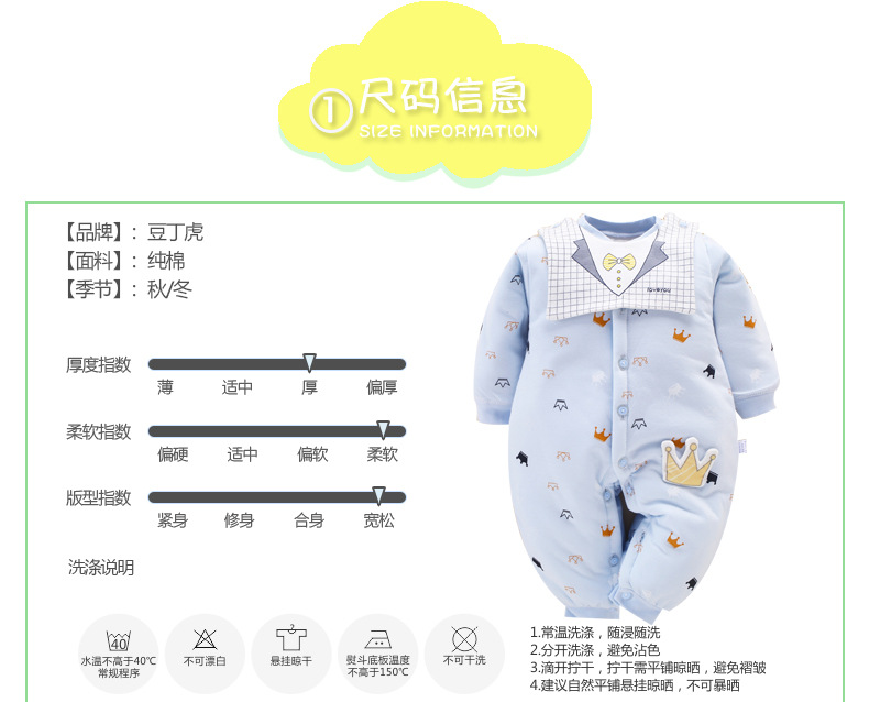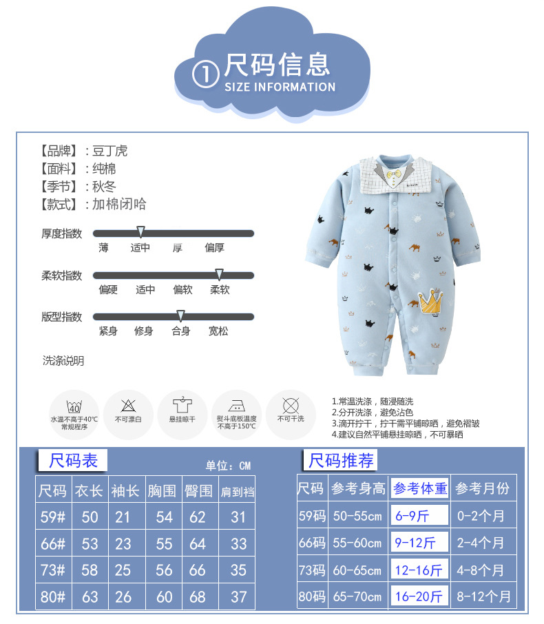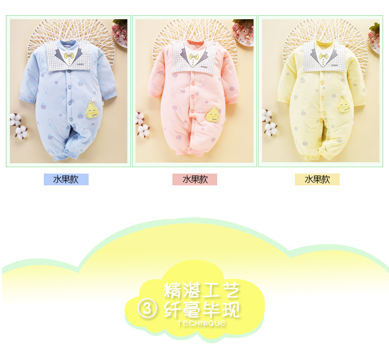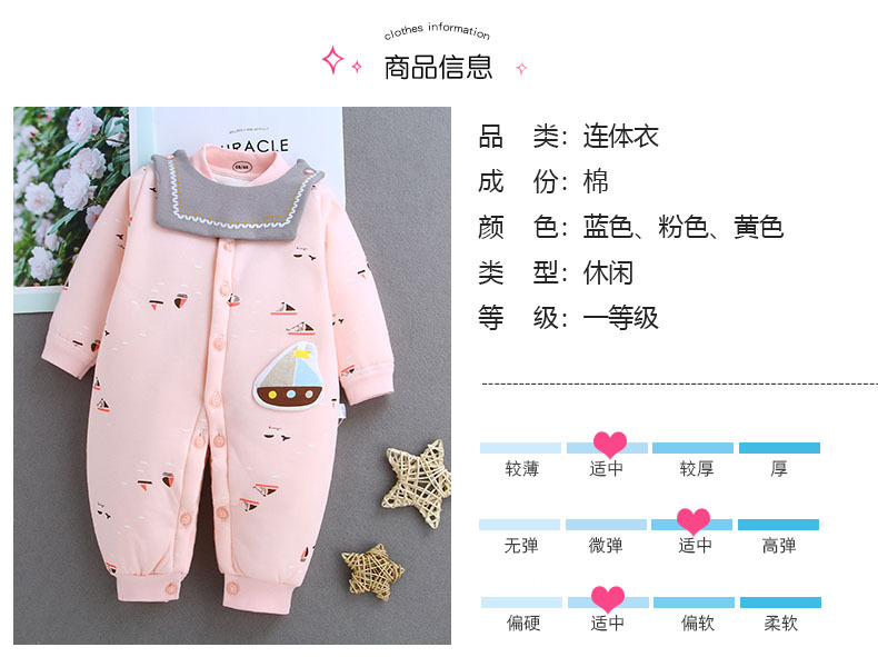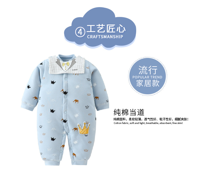 【纯棉当道 妈妈放心】A类纯棉婴儿连体衣秋冬保暖加厚棉质夹棉新生儿衣服爬服婴儿宝宝哈衣