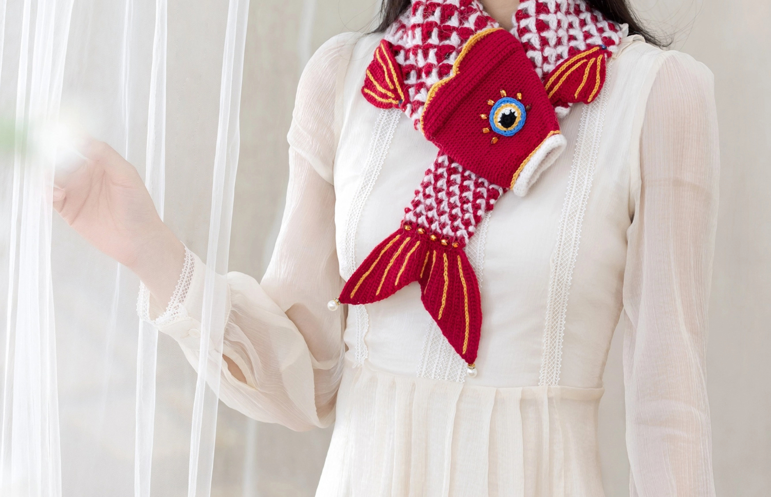 苏苏姐家锦鲤围脖手工diy钩针编织羊毛线围巾毛线团冬材料包