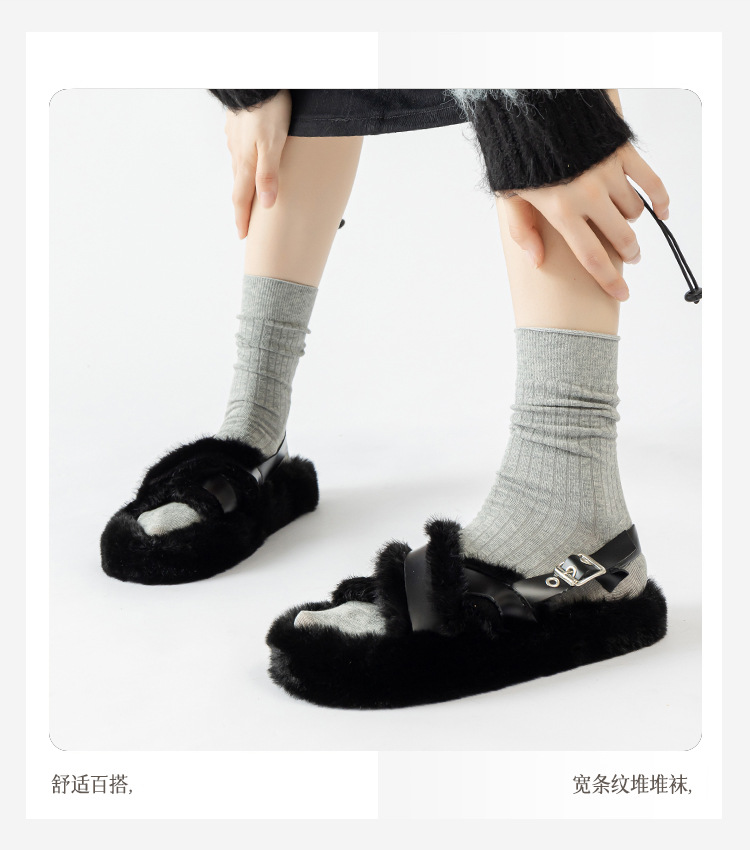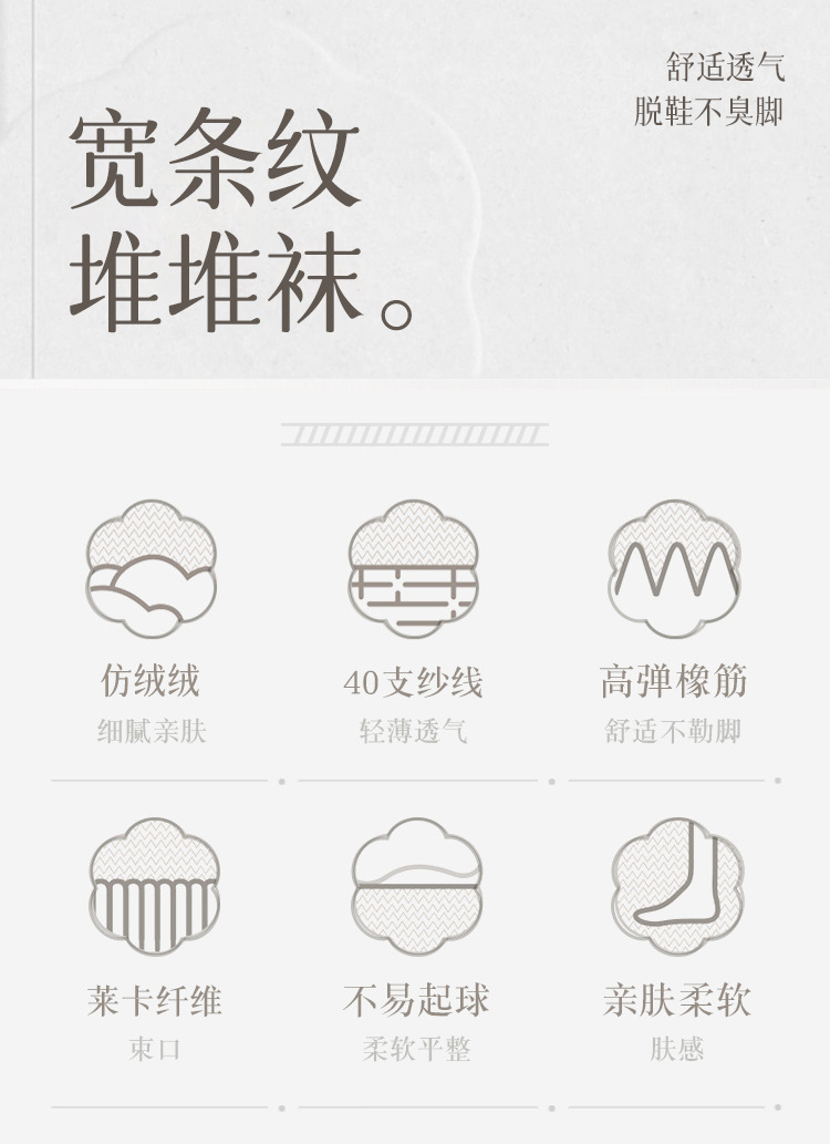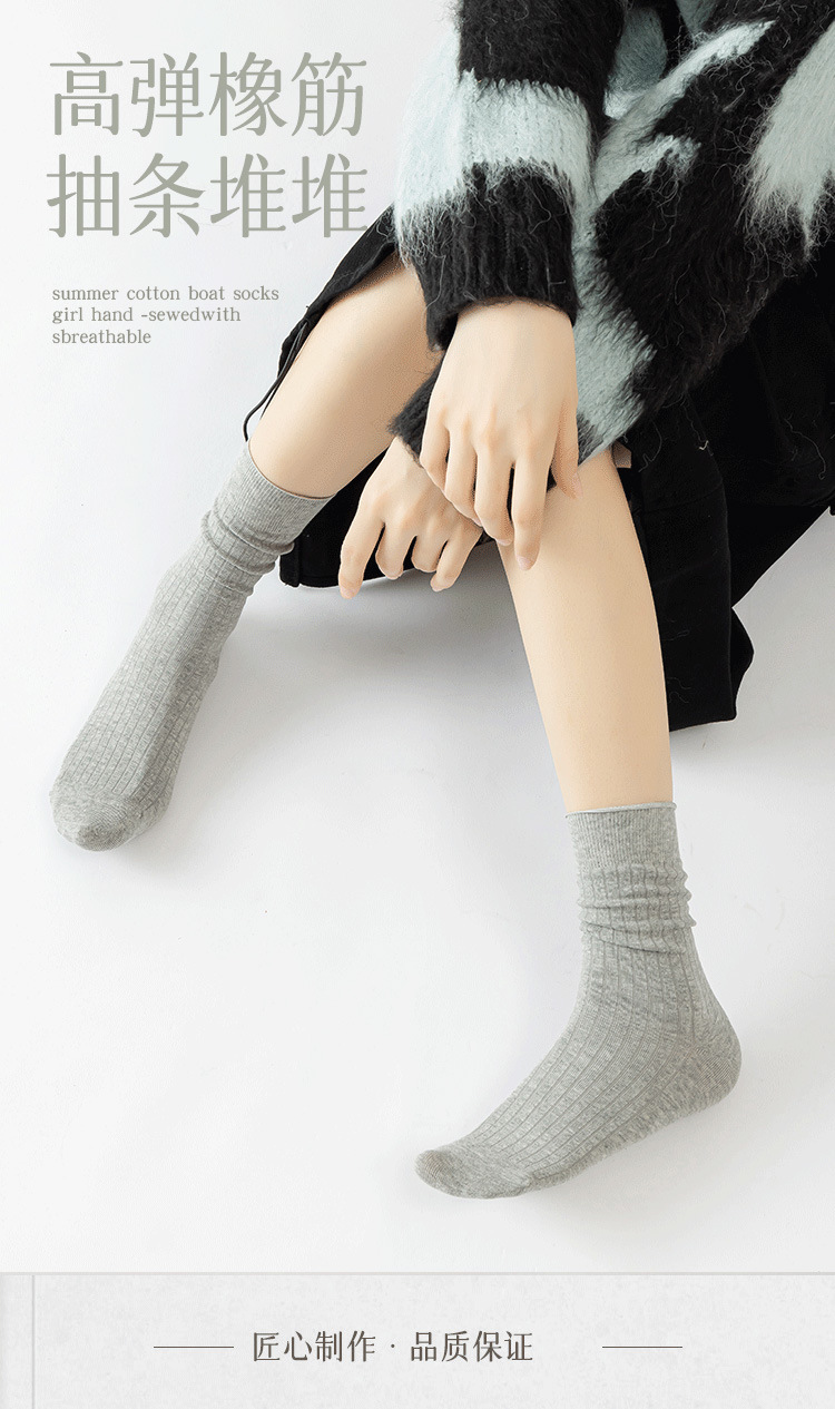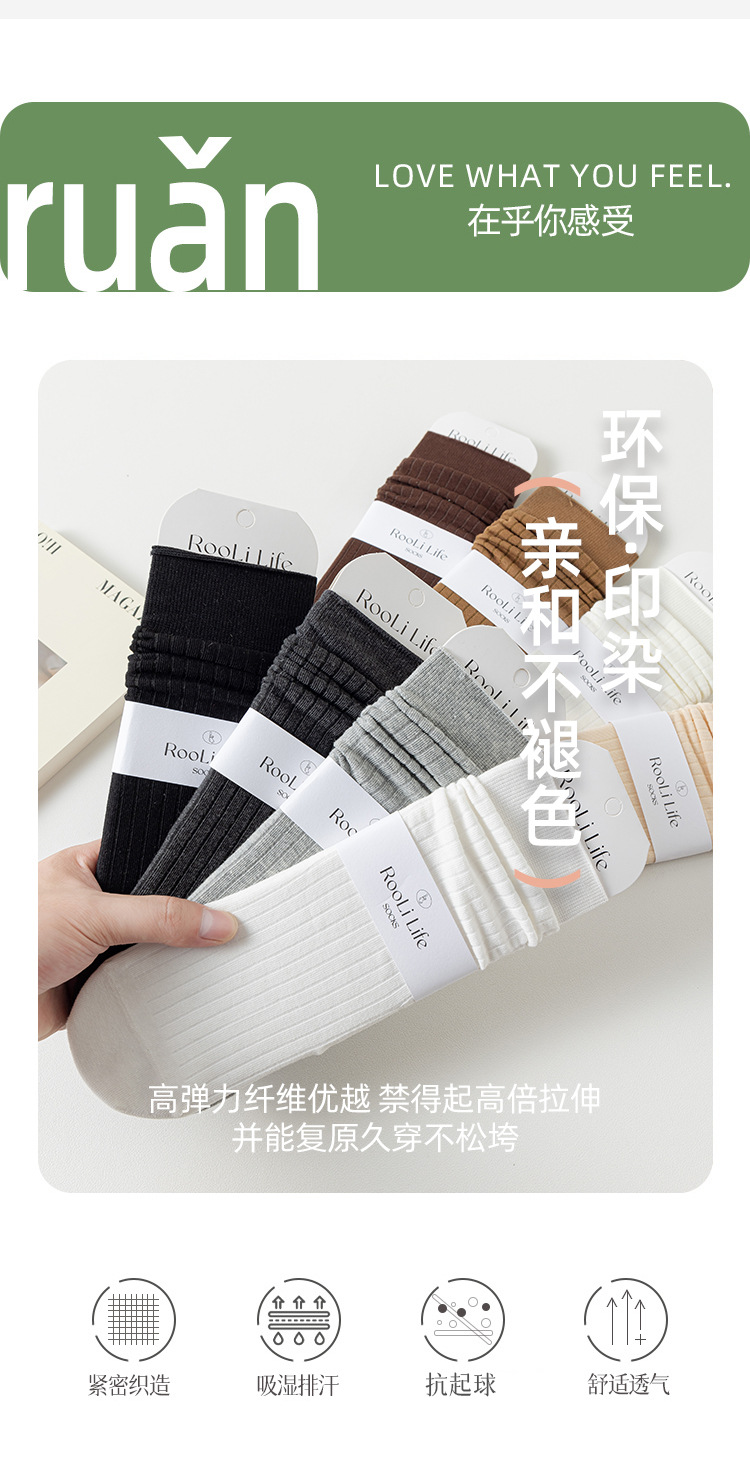 【高弹橡筋,抽条无骨堆堆袜】秋冬堆堆袜7A抗jun纯棉高级无骨袜,细腻亲肤 轻薄透气 舒适不勒脚,中筒袜复古条纹新疆棉吸汗袜子女QQ