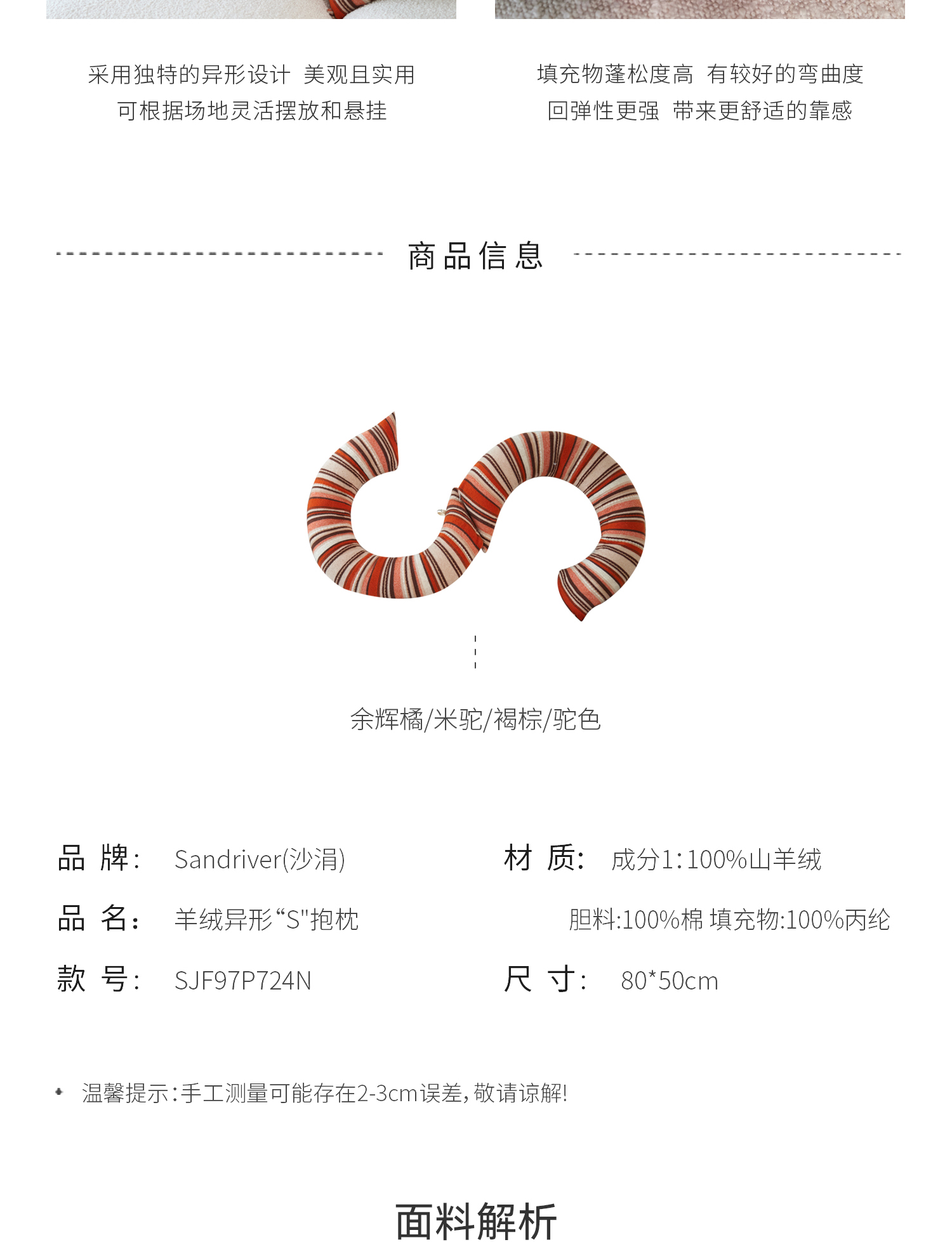 羊绒异形“S"抱枕 SJF97P724N