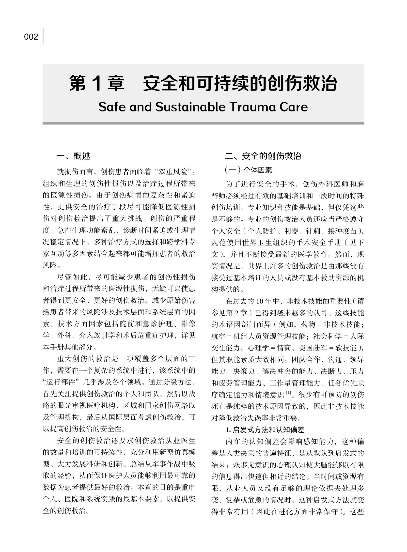 第 1 章 安全和可持续的创伤救治