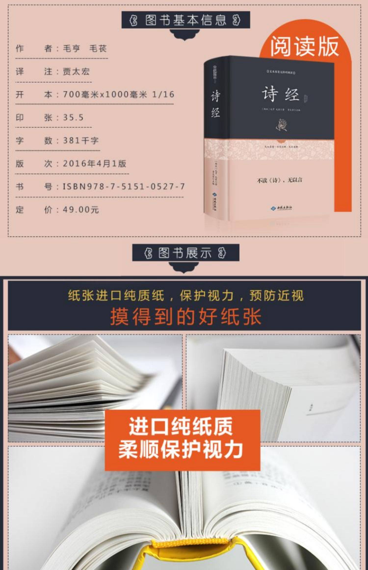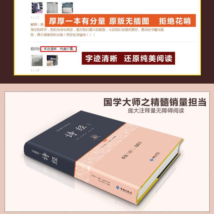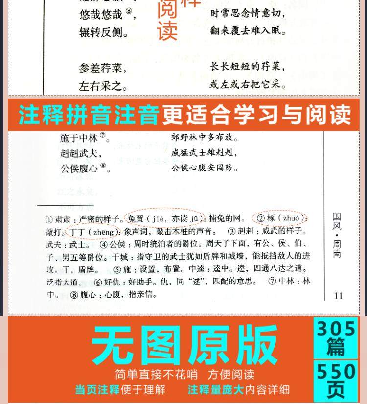 诗经 正版足本原著无障碍完整版 文白对照305首 原文注释赏析疑难字注音 译注带全译文 诗经(名家注评本)(精)/国学经典丛书