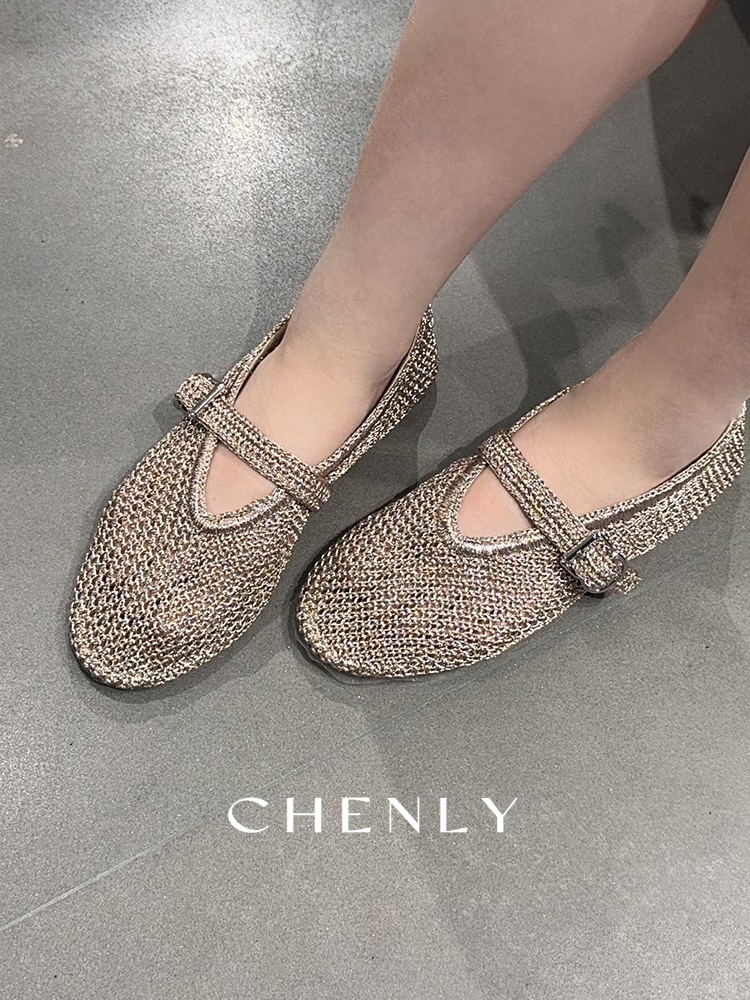 尘衣|25春夏针织金银丝编织鞋