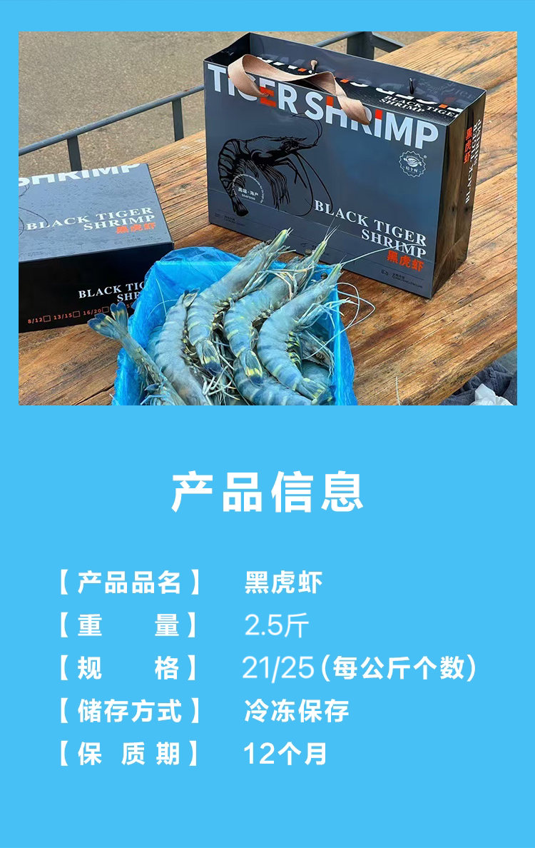 船冻黑虎虾 丰富虾青素 鲜甜肉紧 口感超赞 2.5斤/盒