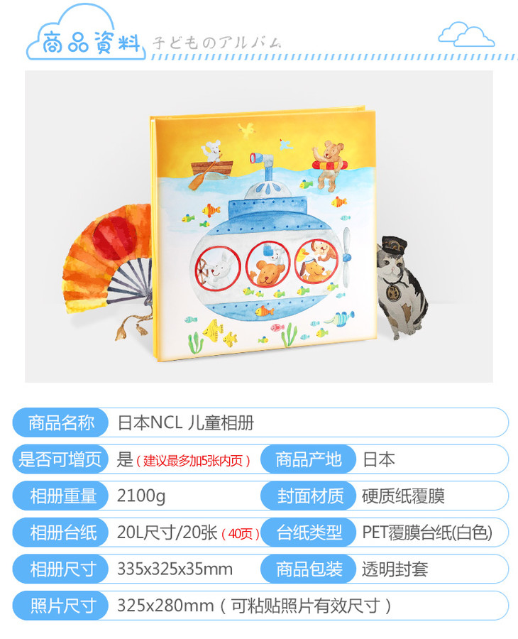 日本ncl相册diy手工粘贴式覆膜影集 儿童宝宝成长纪念册