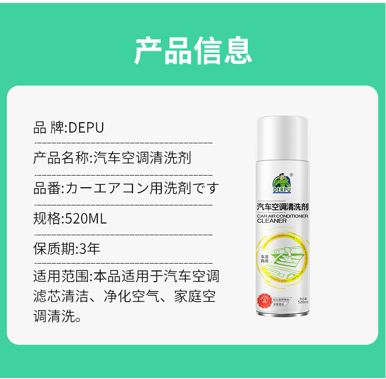 【免拆洗❗️德仆汽车空调清洗剂】远离不健康空气「让空调吹出健康风」洗管道清洁出风口除臭,汽车空调清洁剂L