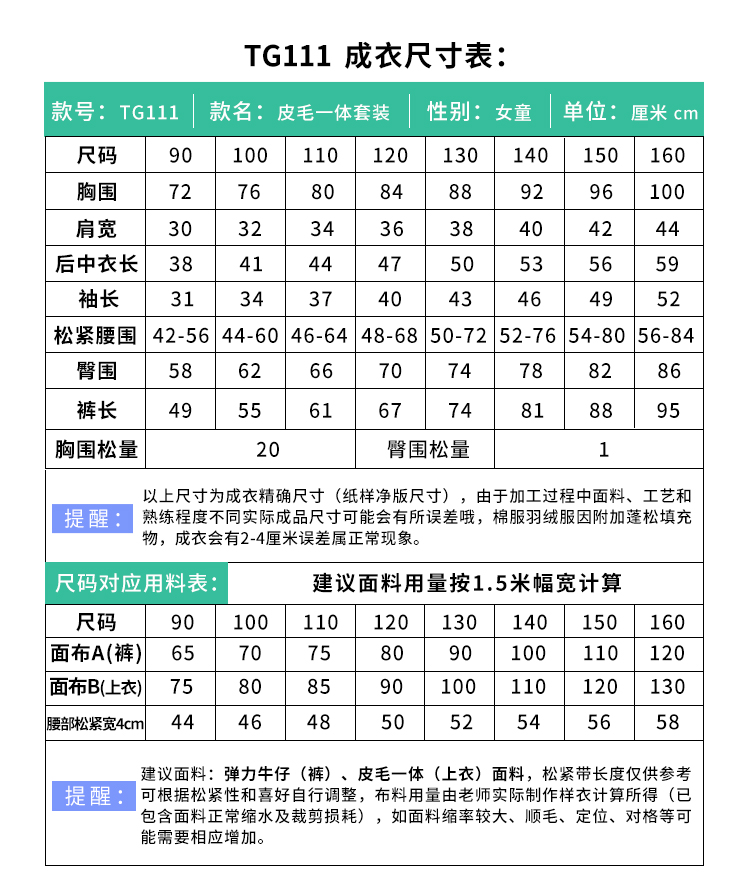 裁缝学苑TG111 女童外套裤子套装纸样皮毛一体儿童装打版裁剪图纸