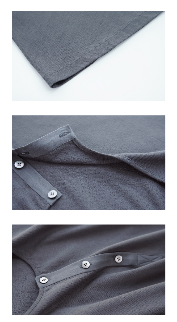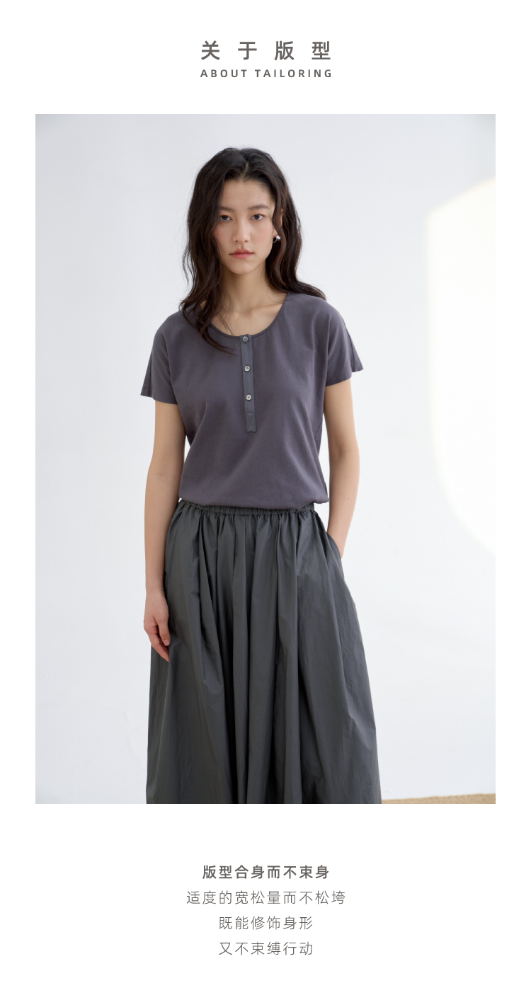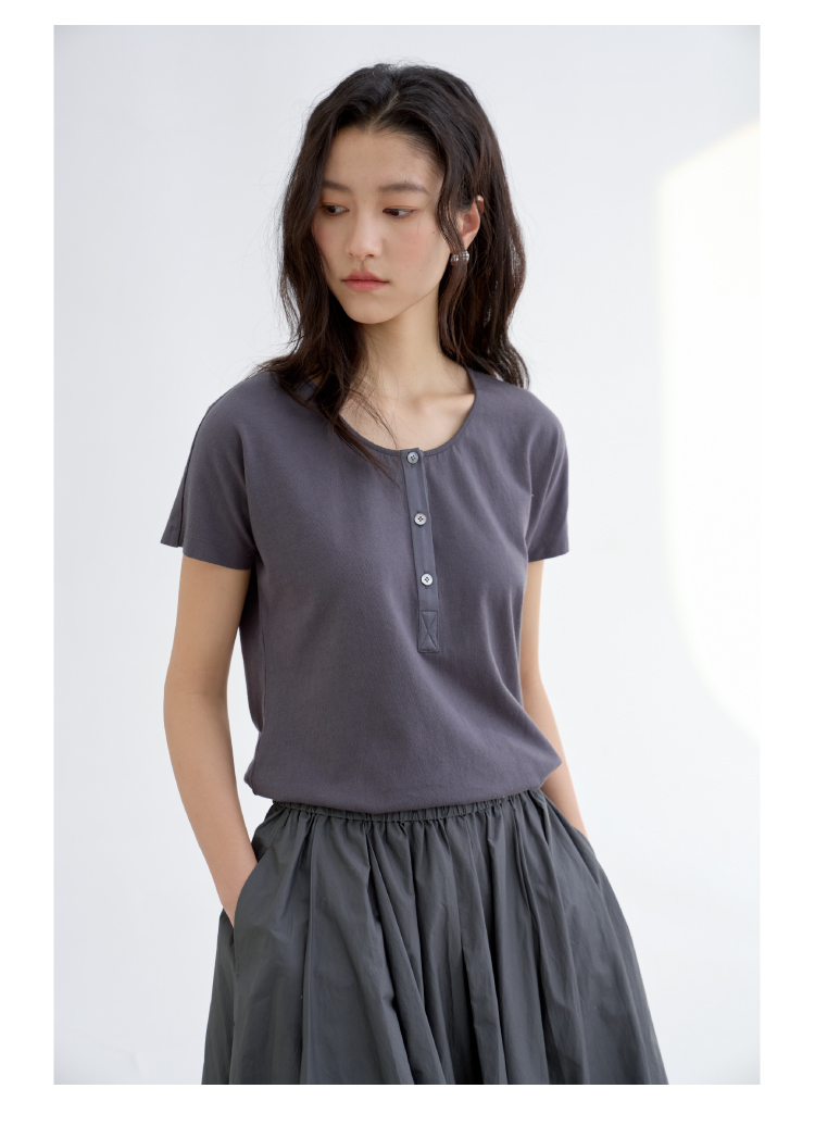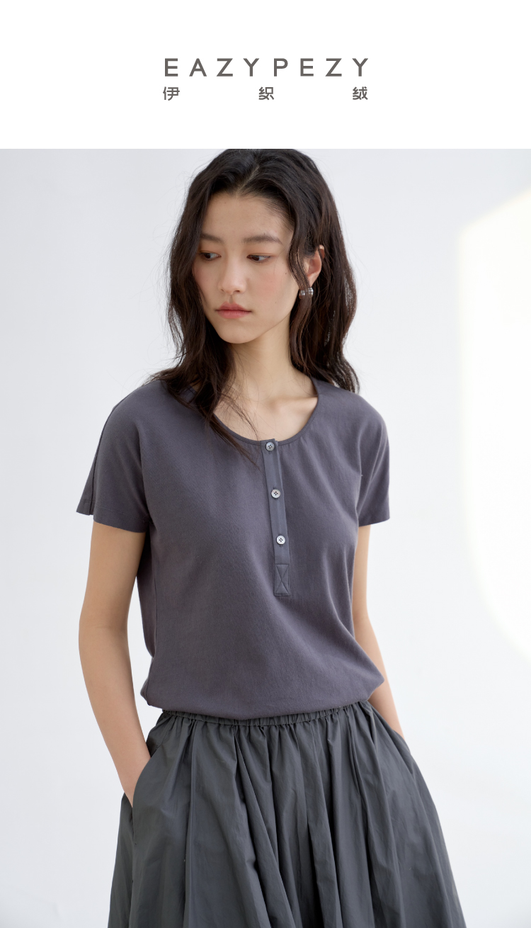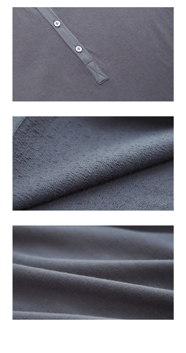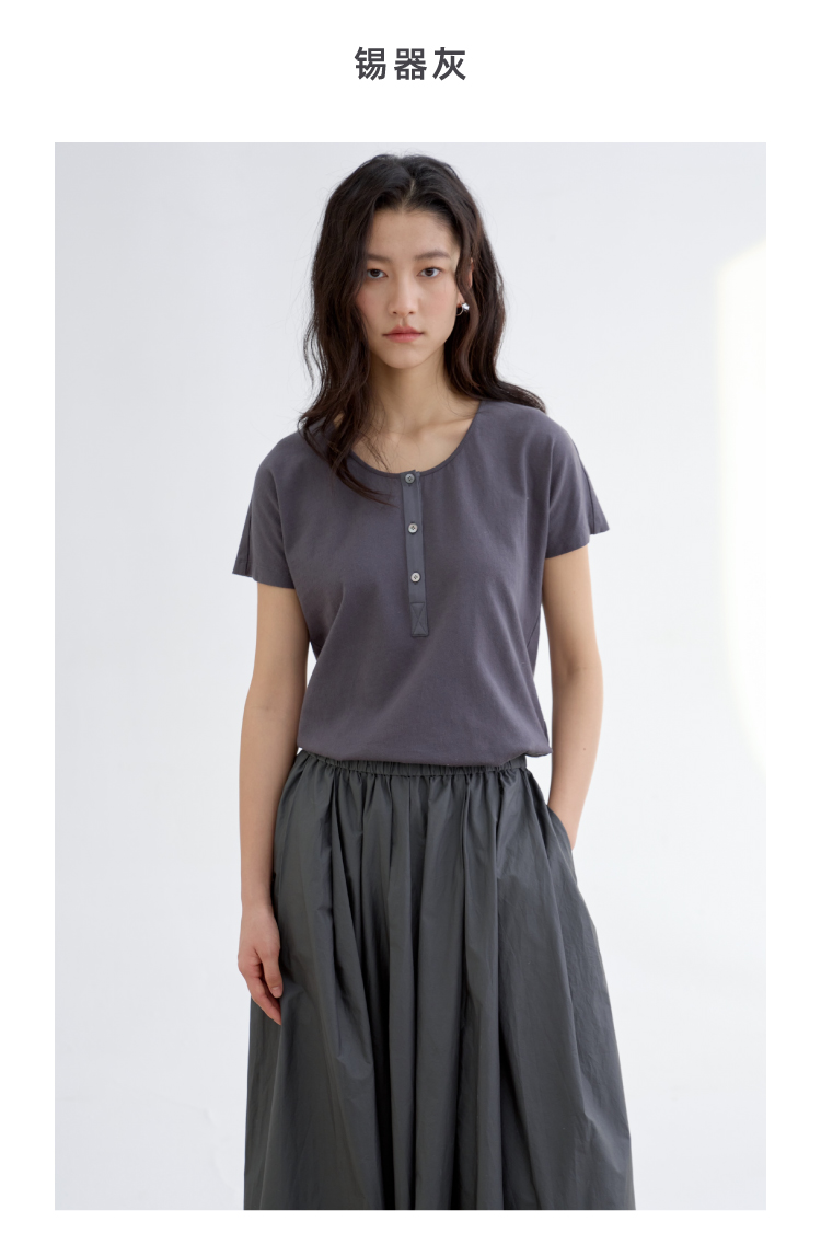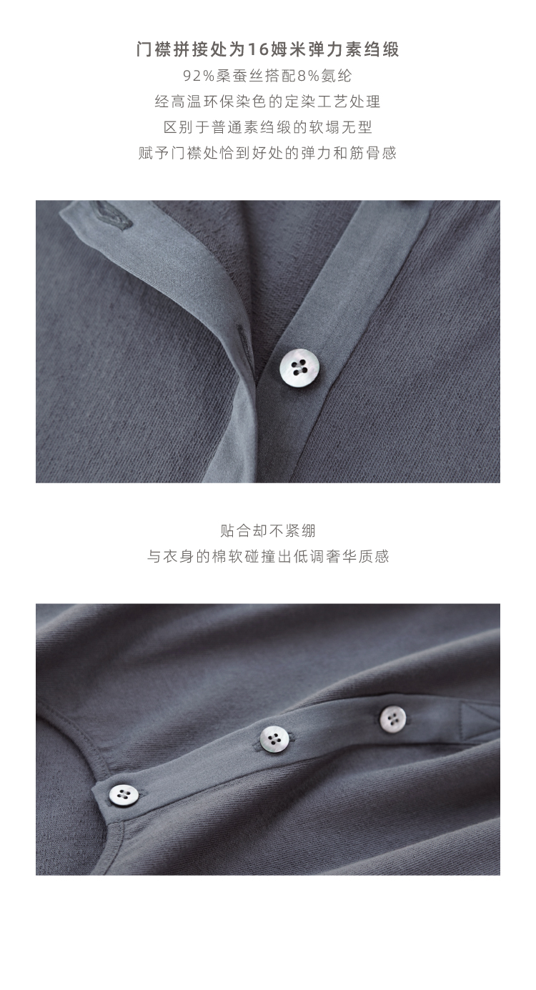 长绒棉亨利领真丝拼接短袖T恤