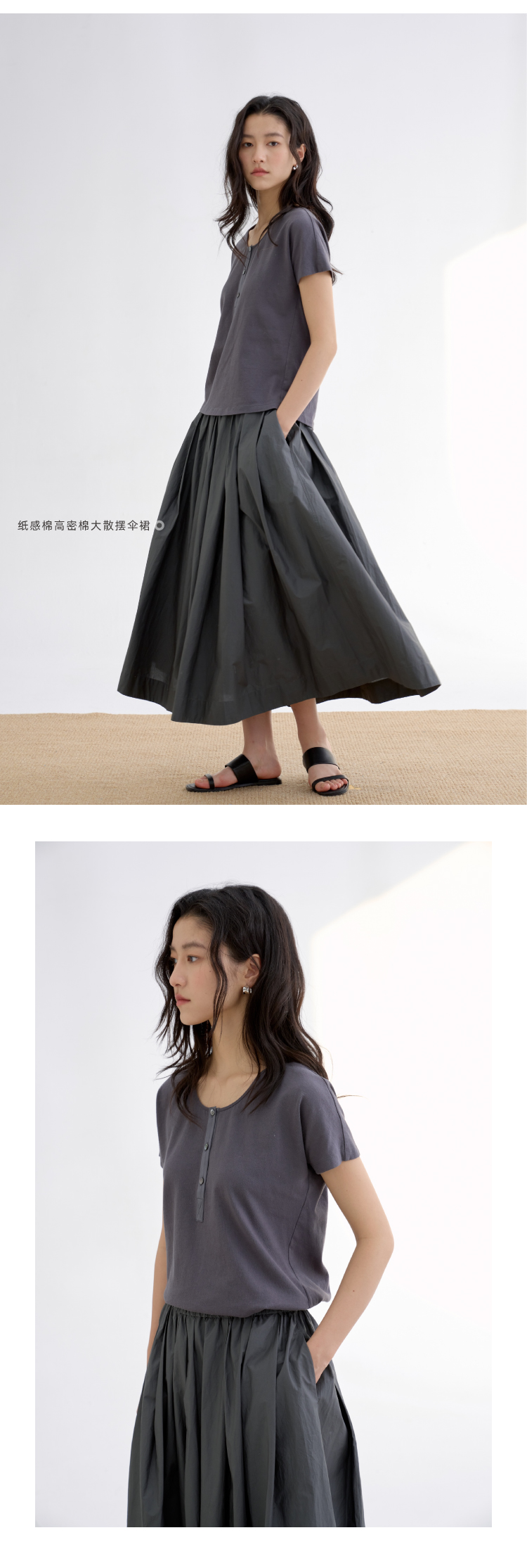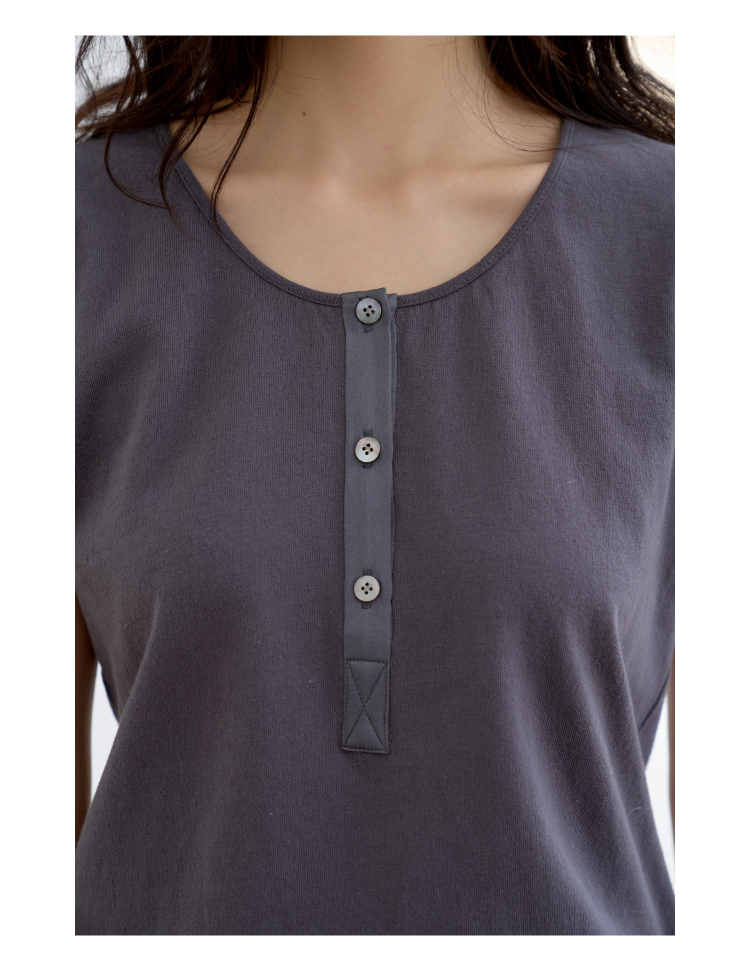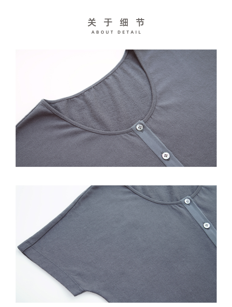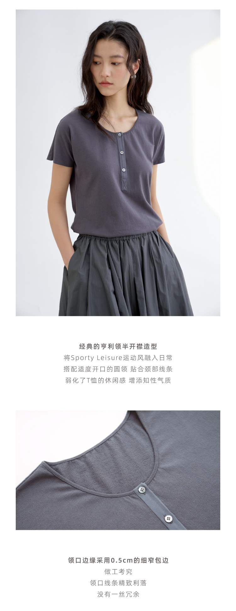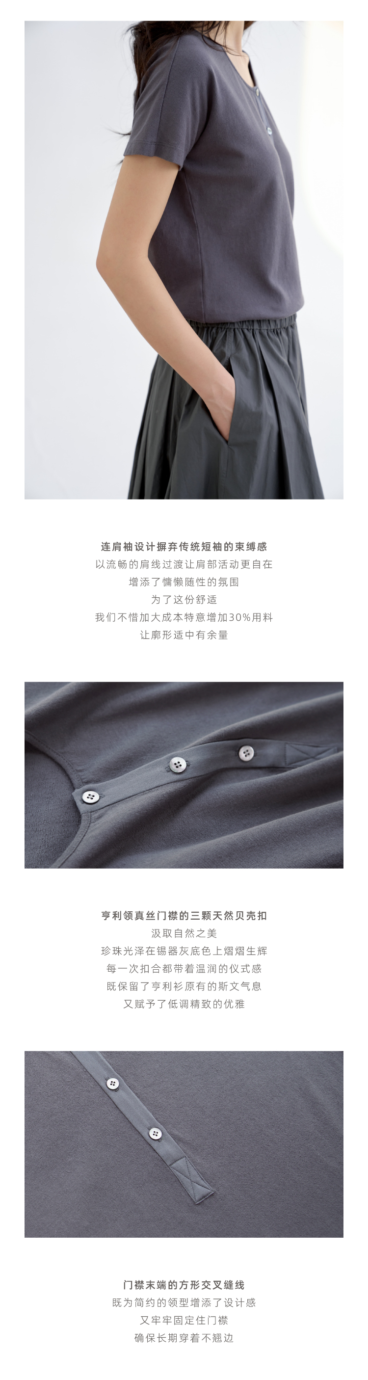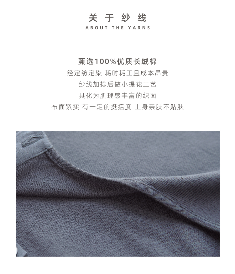 长绒棉亨利领真丝拼接短袖T恤
